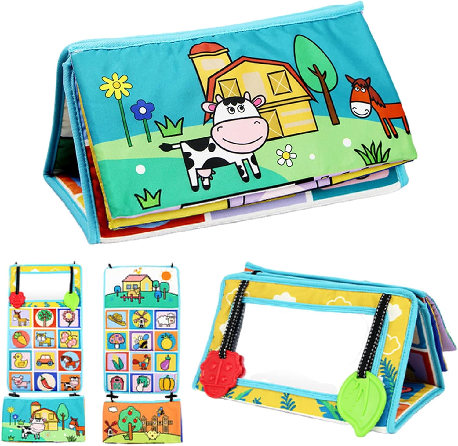 Design double face: lo specchio per bambini offre un lato con un grande specchio per lo sviluppo visivo del tuo bambino e un lato con un porta carte per giochi educativi, ideale per promuovere le abilità cognitive. Uso versatile: questo giocattolo per bambini a specchio può essere utilizzato sia come giocattolo autoportante che sospeso, rendendolo adattabile a qualsiasi ambiente e soddisfa le esigenze del tuo bambino. Specchio extra grande: con più della doppia superficie visiva, questo specchio per bambini aumenta l'interazione visiva, permettendo al bambino di immergersi attivamente in un ambiente di gioco affascinante. Porta carte: il prodotto può contenere due schede di apprendimento contemporaneamente, offrendo una varietà di opportunità di apprendimento e ampliando il piacere di giocare per il tuo bambino. Funzionalità avanzata: oltre all'uso durante la pancia, lo specchio può essere utilizzato anche come specchio da spogliatoio e come supporto per smartphone o tablet, prolungando così la durata del prodotto.