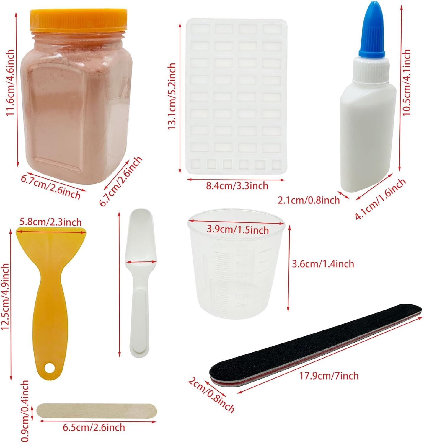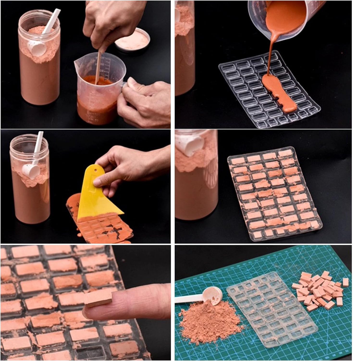 Set per la produzione di mattoni in miniatura: il set include: 2 stampi per mattoni, 1 polvere di mattoni rossi, 2 misurini di plastica, 1 cucchiaio di plastica, 1 striscia per lucidare, 1 colla, 1 raschietto, 5 bastoncini di legno, 5 guanti. Stampo per mattoni in silicone: realizzato in silicone di alta qualità per un uso durevole. 2 dimensioni dei mattoncini: circa 15 x 7 x 3 mm, 7 x 7 x 3 mm. Mini mattoncini in 2 stili: 2 stili di stampi in silicone per mattoncini in miniatura, quantità sufficiente per realizzare le tue creazioni e sufficiente per soddisfare le tue diverse esigenze. Appositamente progettato per la decorazione, è adatto per decorare mini case, mini paesaggi, mini tavoli di sabbia e soddisfa facilmente le diverse esigenze. L'oggetto finito è bello e pratico, può essere utilizzato bene in micro paesaggi.