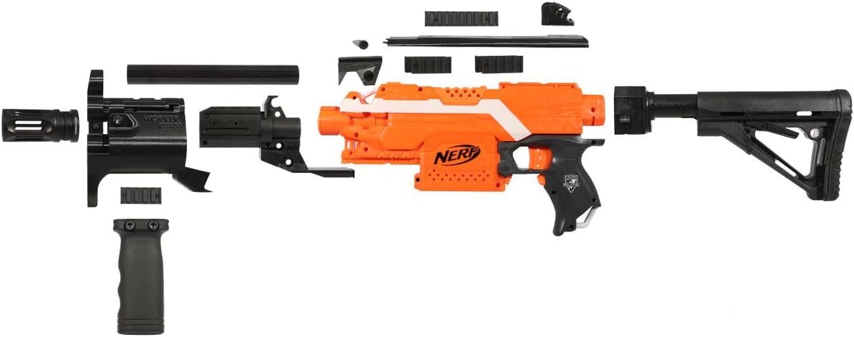 Kit completo per il corpo MP5 per trasformare il tuo Blaster in un MP5 Facile da montare per un look unico – Completa completa per un MP5 – Contenuto della confezione: vedi immagine 2 Tutti gli articoli sono realizzati in plastica di alta qualità Adatto per NERF Stryfe – NERF Dart-Blaster non incluso [Worker] è sinonimo di un enorme assortimento di accessori per tuning, moda e accessori per Dartblaster. Da ora in poi ci sono prodotti Worker anche da Blasterparts in Germania