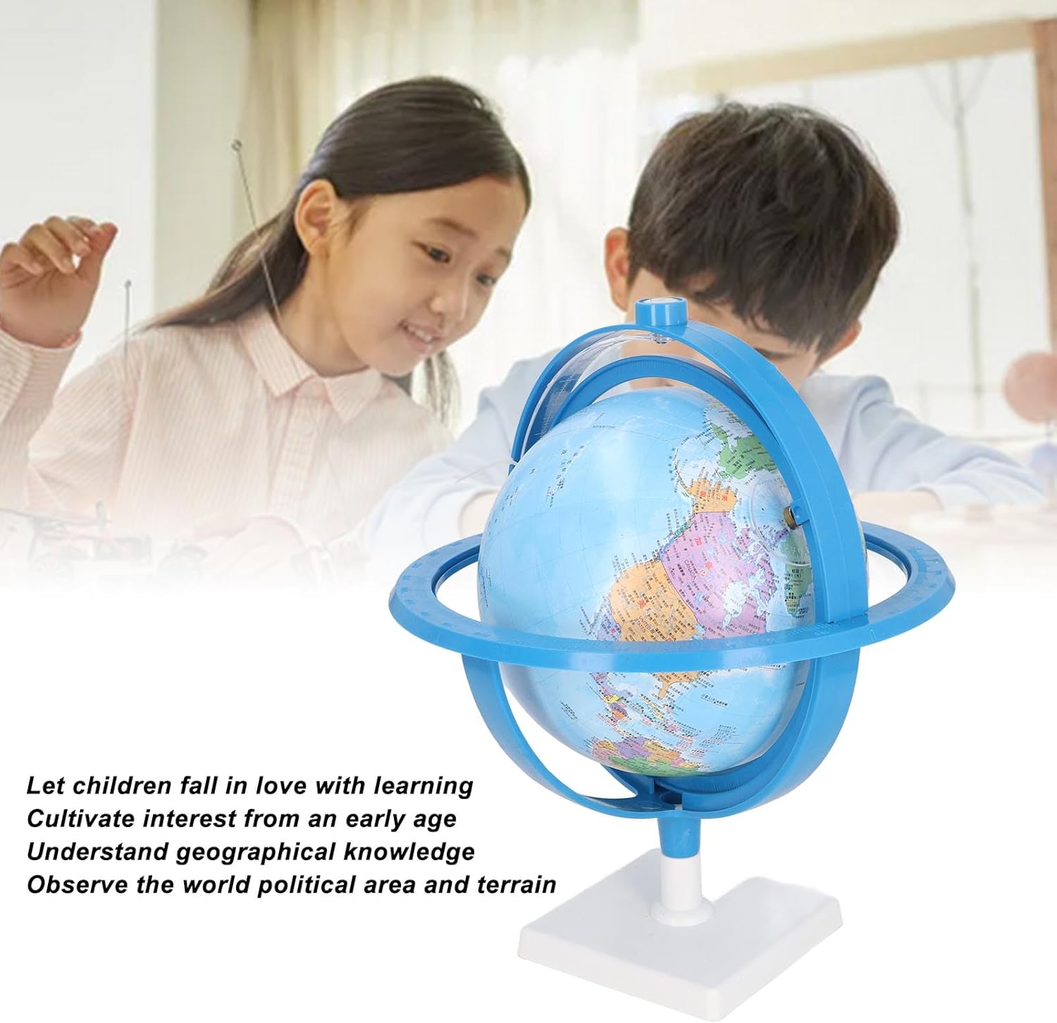 [Incoraggia l'interesse di apprendimento] Questo mondo mondiale funge da strumento di insegnamento D ELLa geografia coinvolgente, aiutando i bambini a esplorare il mondo attraverso l'apprendimento pratico e ispirando la loro curiosità fin dalla tenera età. [Caratteristiche educative] dotati di un indicatore di Dawn e del crepuscolo, confini politici, dettagli sul terreno e una piastra di fuso orario, questo globo migliora la comprensione D ELLa geografia, dei fusi orari e del posizionamento globale. [Materiali per bambini: realizzati in plastica ABS di alta qualità, questo globo ha una finitura liscia, garantendo un'esperienza di apprendimento S ICURA, pubblicabile e rispettosa D ELL'ambiente per i bambini. [Scala chiara e dettagliata] progettata con una bussola integrata per una migliore consapevolezza direzionale, il globo presenta linee trasparenti di latitudine e longitudine per un riferimento di posizione facile e preciso. [Design rotabile a 360 °] Costruito per l'apprendimento interattivo, questo globo ruota senza intoppi in tutte le direzioni, consentendo ai bambini di sviluppare abilità pratiche, approfondendo al contempo la loro comprensione D ELLa geografia mondiale.