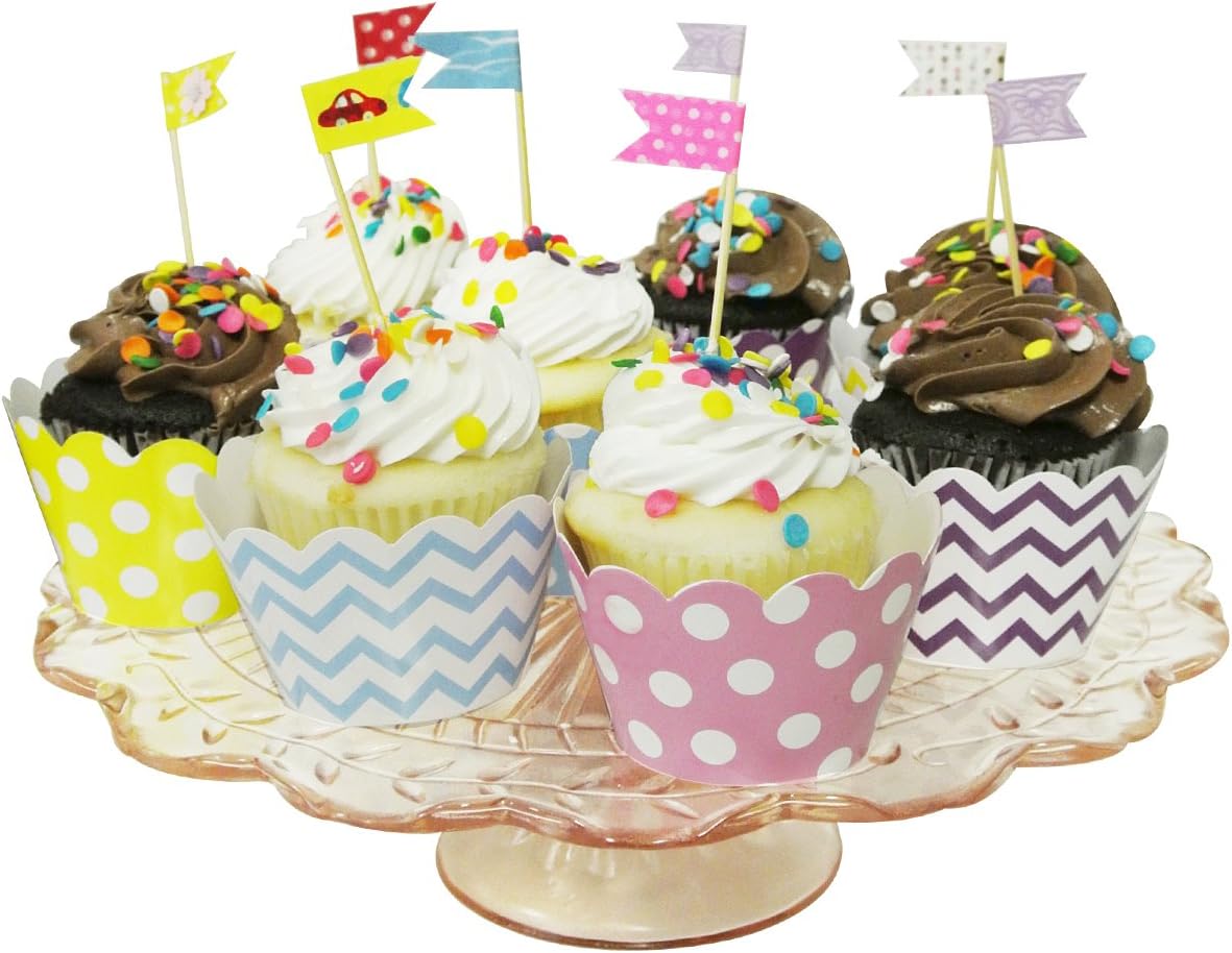 Perfetto per feste di compleanno, feste di addio al nubilato, eventi speciali e molto altro ancora Per assemblare, far scorrere la linguetta nella fessura pretagliata; posizionare il cupcake cotto nel wrapper assemblato e decorare; non adatto al forno; non cuocere negli involucri Set di 60 pirottini per cupcake, non include cupcake Dimensioni: 3,25 "W x 2" H; Adatto per cupcake di dimensioni standard; Materiale: Cartone Crea i tuoi plettri per decorazioni; utilizza il nostro nastro adesivo colorato per avvolgere gli stuzzicadenti o qualsiasi altro plettro per alimenti e ritagliare la forma desiderata