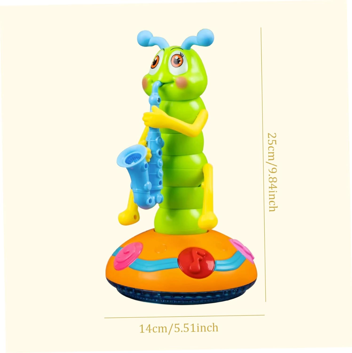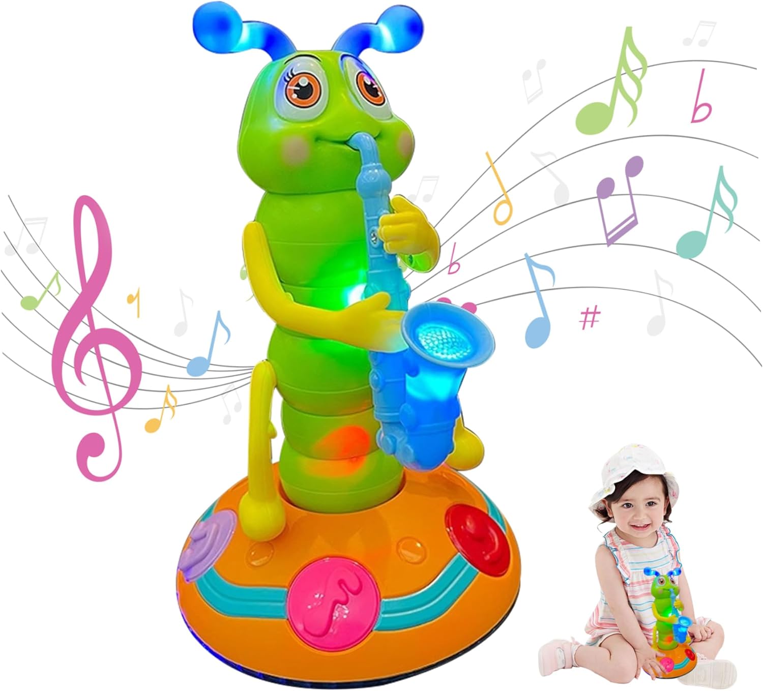 Evitamento automatico degli ostacoli: dotato di sensori intelligenti, questo giocattolo a forma di bruco muove nel suo ambiente evitando automaticamente gli ostacoli, garantendo un'esperienza di ballo senza soluzione di continuità e ininterrotta, promuovendo la consapevolezza spaziale nei bambini. 2 modalità di gioco: il bruco elettrico presenta 2 modalità, la modalità luci e la modalità danza..Spingi l'interruttore sulla prima posizione per la modalità luce e le luci colorate sul corpo e sulla base del bruco lampeggeranno, luci affascinanti che attirano l'attenzione dei bambini..Spingere l'interruttore nella seconda posizione per la modalità ballo..Il giocattolo del bruco oscillerà e danzerà con le luci e i suoni, spingendo i bambini a stringere la mano e torcere il corpo, migliorando l Ottimo per i bambini: giocattolo a forma di bruco in plastica, accessorio perfetto per la decorazione domestica, feste, creando un'atmosfera vivace e calda..Perfetto per bambini, neonati, bambini piccoli, i tuoi amici e te stesso, come il compleanno. Sicuro: il giocattolo Caterpillar che balla e canta utilizza plastica atossica e innocua, ABS spesso e sicuro, inodore..La superficie liscia e il bordo arrotondato, non graffiano le mani dei bambini, possono essere utilizzati a lungo. Apprendimento educativo per i più piccoli: adatto per la fascia di età da 0 a 3 anni, questo giocattolo offre molto più che un semplice intrattenimento;.stimola lo sviluppo cognitivo, la coordinazione e l'apprezzamento del ritmo, rendendolo un giocattolo di apprendimento ideale per lo sviluppo della prima infanzia.