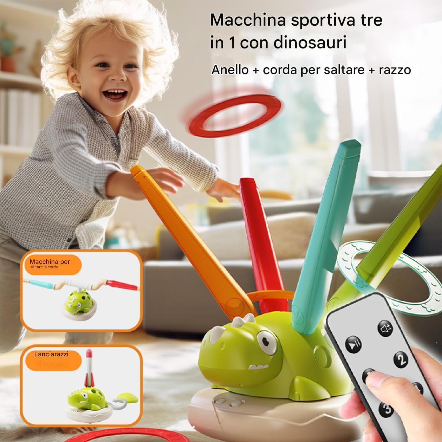 Ampia applicazione: ravviva la riunione della tua famiglia con salto musicale: il gioco ideale all'aperto e al coperto. Con entusiasmanti giochi da giardino e cortile, nonché ottime opzioni per compleanni e Natale. Come maestro di intrattenimento, garantisce più divertimento da solo o di gruppo Maggiore perseveranza: inizia la tua routine di fitness con l'esperienza di allenamento guidata dal del salto musicale, che garantisce emozionanti corse e passo-passo per portare la tua esibizione alla fase successiva Promuove le abilità motorie: dai a tuo figlio un allenamento divertente con salto musicale, un gioco gonfiabile con canna rotante e 5 corridoi regolabili. Controlla la velocità da lontano mentre i bambini saltano nei ritmi musicali e migliorano la coordinazione, la mobilità fisica e le abilità motorie Maneuvers musicali: una volta che hai impostato la velocità, i tubi del salto musicale pompa queste melodie e lanciano l'anello per un gioco di lancio di anelli interattivi. per i giochi PK multiplayer competitivi Promuovi divertimento e coesione: riunisci la tua famiglia con il salto musicale e goditi i vantaggi delle attività sportive e dei giochi di famiglia. Osserva come i tuoi figli migliorano il coordinamento e lo spirito di e stesso creare ricordi preziosi tra loro