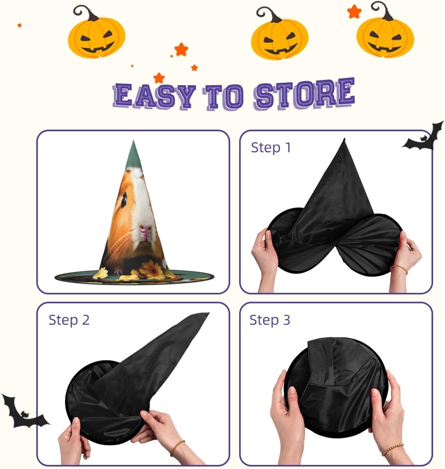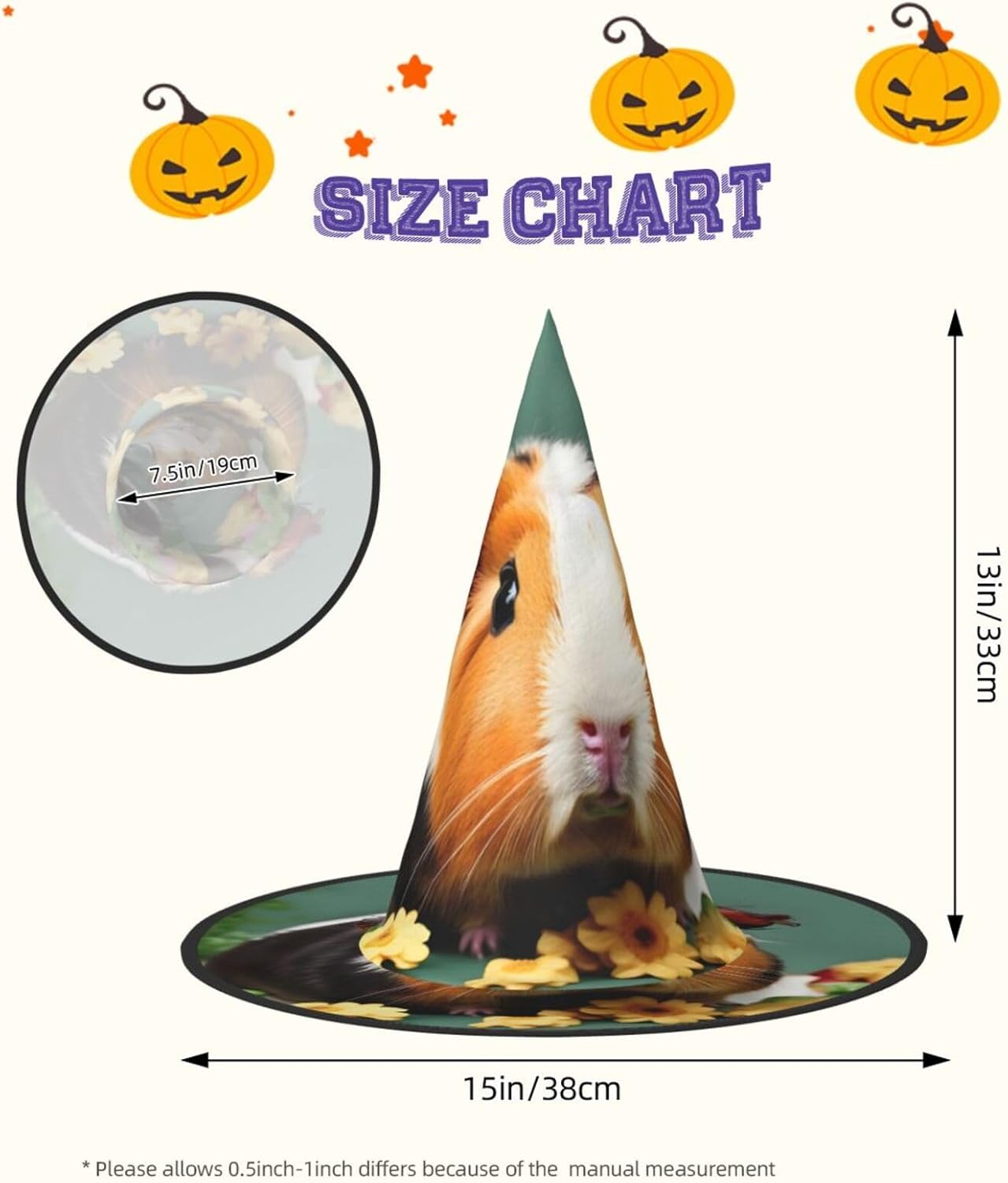 WURTON Cappello da strega con stampa di porcellini d'India, per adulti, cappello da strega, cappello da strega, decorazione per feste di Halloween