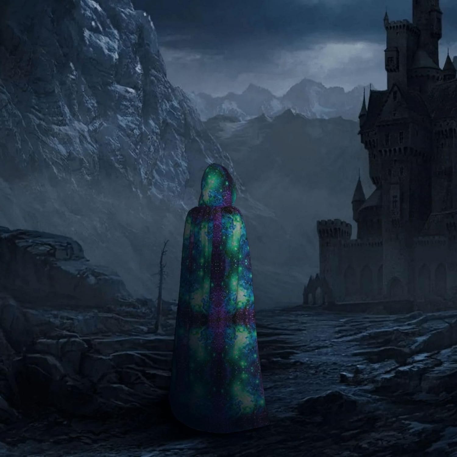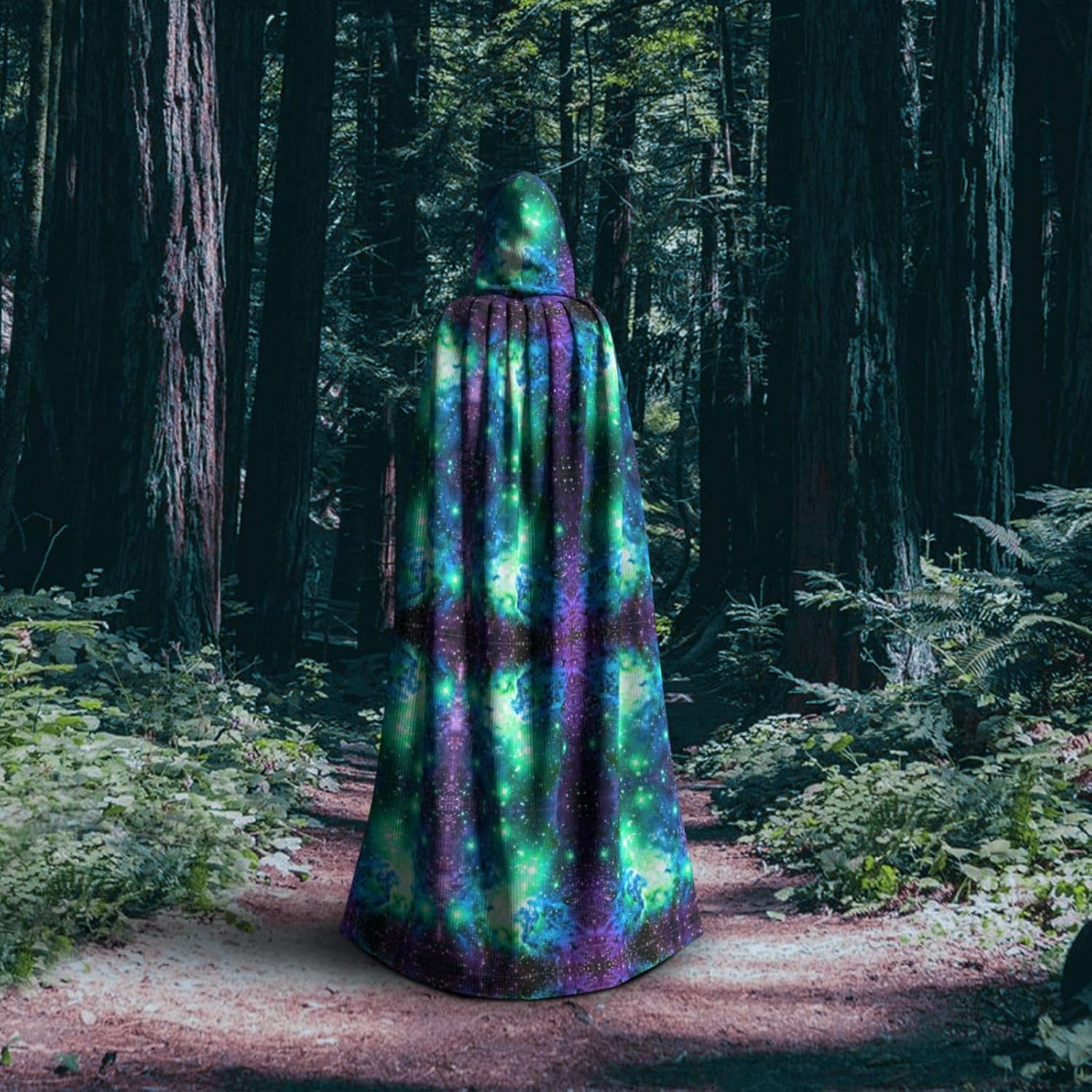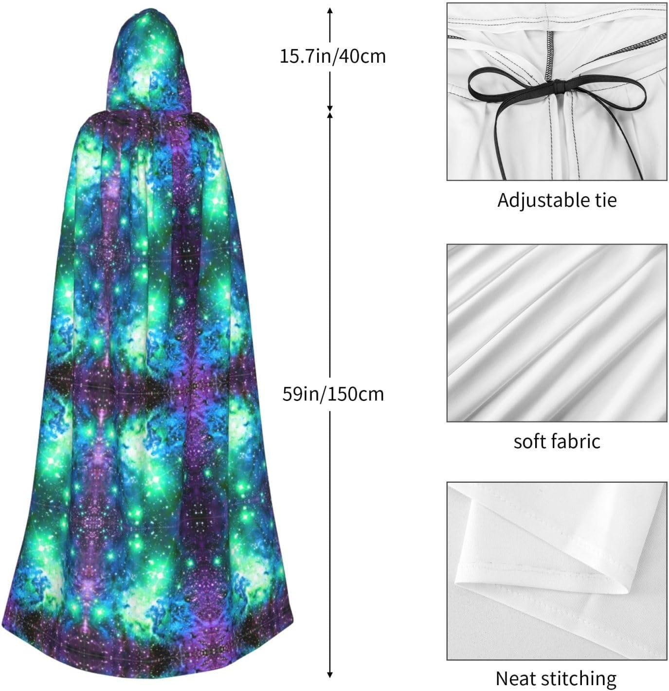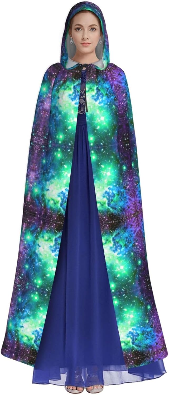 WURTON Mantello con cappuccio unisex verde blu viola stampa galassia costume donna uomo vampiro Halloween Cosplay Carnevale festa a tema