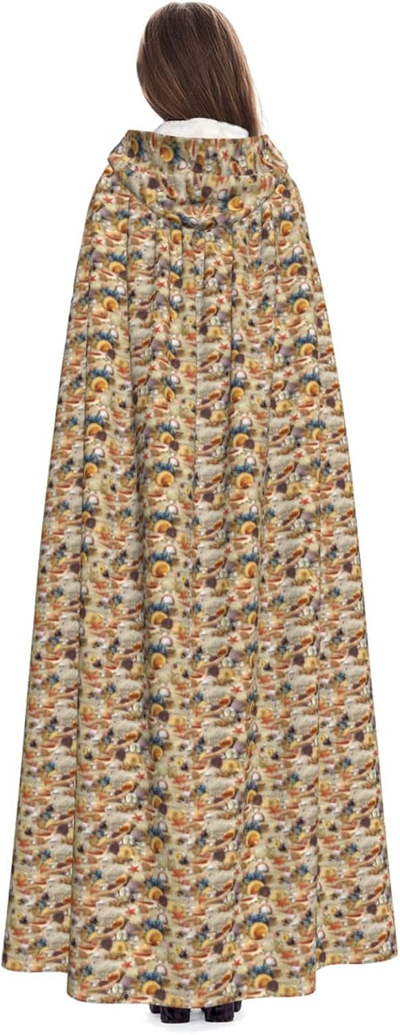 WURTON Starfish Seashell Sandy Beach tema stampa unisex con cappuccio mantello costume donna uomo vampiro Halloween Cosplay Carnevale festa a tema