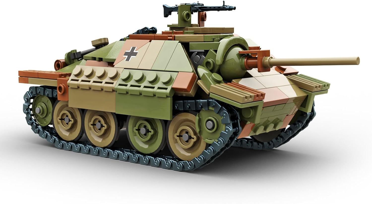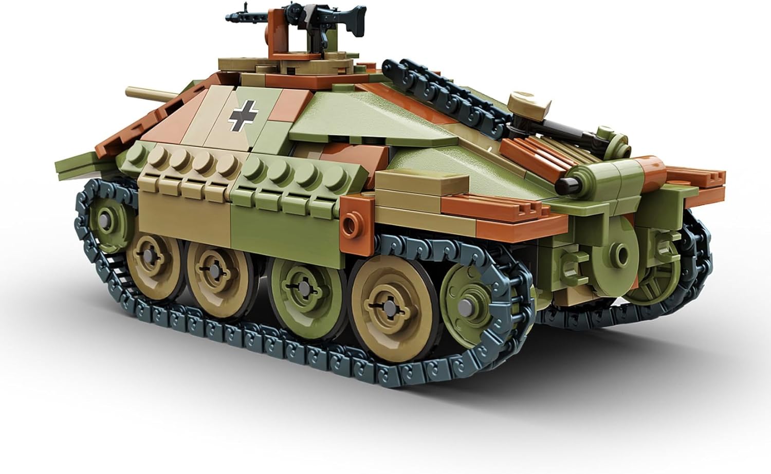 MODELLO IN SCALA: Modello di carro armato Panther Ausf D in scala 1:33 altamente dettagliato, misura 20 cm di lunghezza, 9,6 cm di larghezza e 8,8 cm di altezza Numero di pezzi: set di costruzione completo con 940 pezzi, che offre un'esperienza di montaggio coinvolgente con un grado di difficoltà di 7/10 DETTAGLIO INTERNO: Presenta un design modulare con sezioni rimovibili della torretta e dello scafo, rivelando interni dettagliati tra cui sedili, trasmissione e componenti del motore CARATTERISTICHE AUTENTICHE: Include un sistema di sospensione funzionante e elementi di design storicamente accurati come armature inclinate e minigonne laterali protettive Kit completo: viene fornito con manuale stampato a colori, foglio adesivo personalizzato tra cui Balkenkreuz e numeri di serbatoio, più mattoni di ricambio aggiuntivi