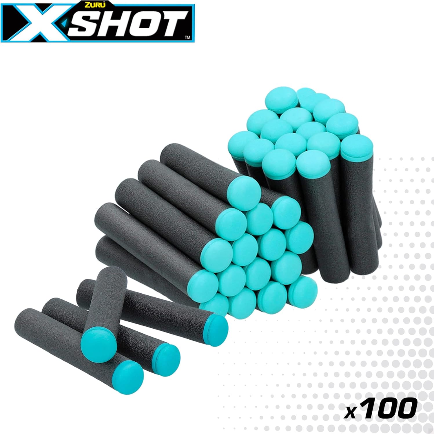 Con queste freccette X-Shot potrai caricare la tua pistola con munizioni in gommapiuma tutte le volte che vuoi! Include: 100 freccette in gommapiuma che sono sicure e non causano danni (si consiglia di non puntare al viso o agli occhi durante il gioco) Compatibilità: queste freccette sono compatibili con le principali marche sul mercato Valori: i giocattoli di mira sviluppano l'orientamento spaziale e la coordinazione occhio-mano, oltre a favorire la socializzazione e il gioco all'aperto Età: consigliato a partire dagli 8 anni in su