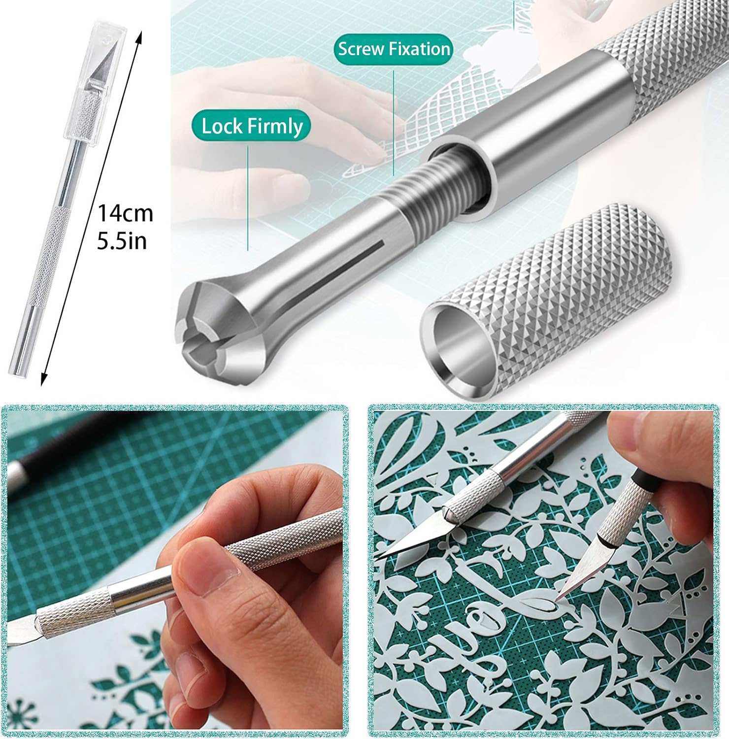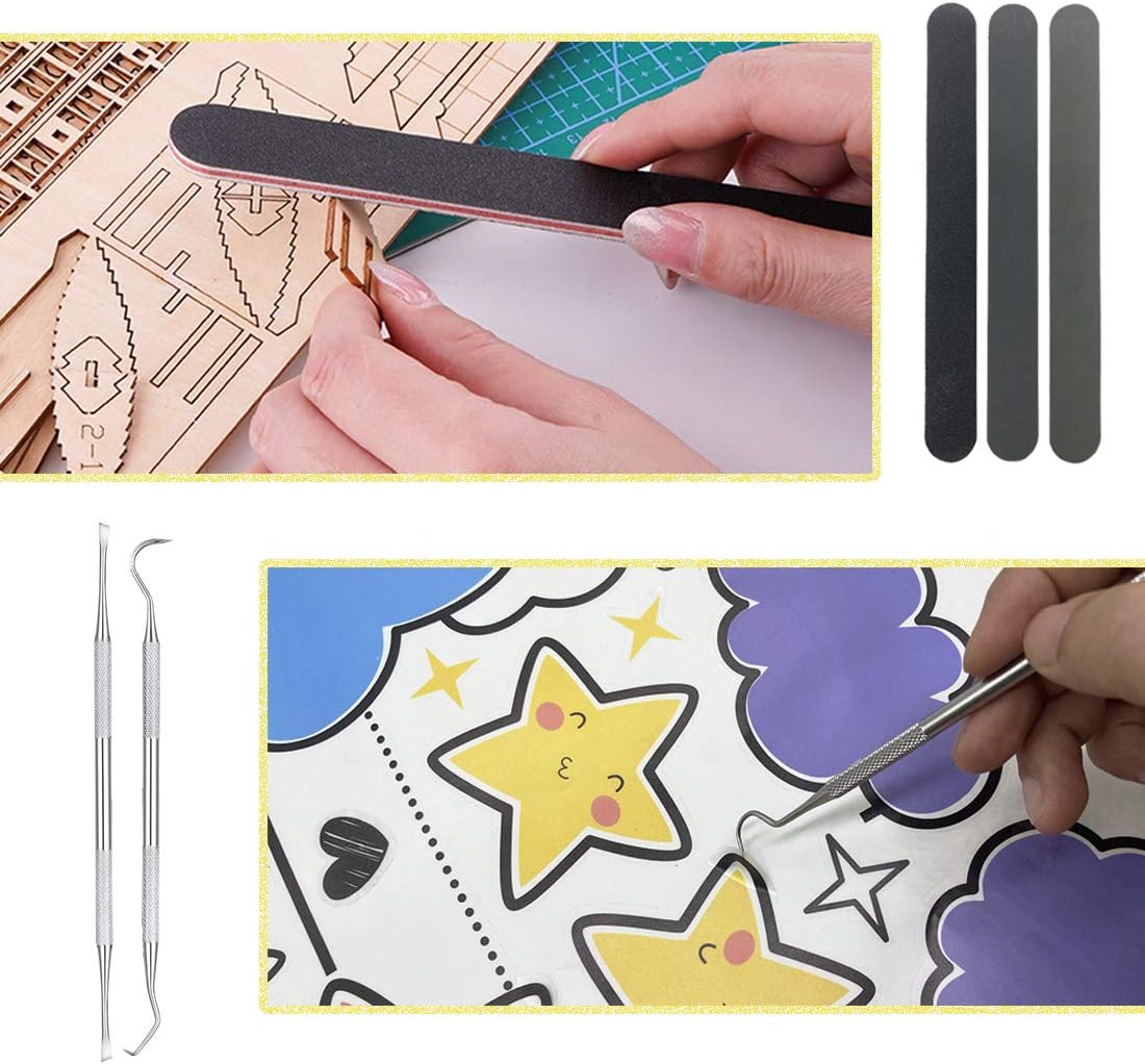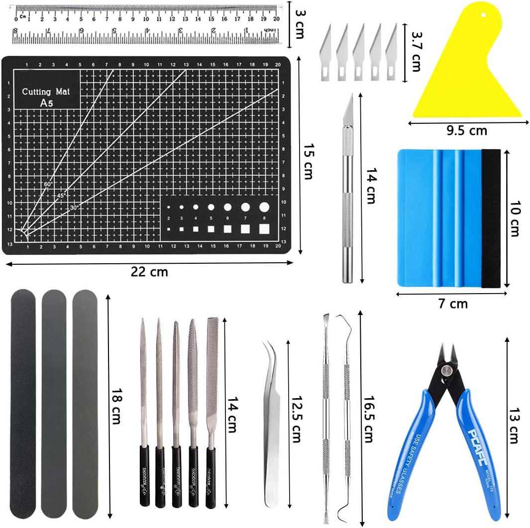 Contenuto della confezione: 1 tappetino da taglio A5, 1 coltello di precisione + 5 lame, 1 pinza laterale, 3 strisce abrasive per sabbia (600#/1000#/2000#, 5 lime (diversi tipi), 2 ganci per diserbo, 1 pinzetta, 1 righello, 2 raschietti. Set di strumenti di base economici. 【Applicazione】: questo set per lavori manuali è adatto anche per modellisti principianti e avanzati. Puoi usarlo per realizzare giocattoli, automobili, robot, cartoni animati e altri lavori artigianali. Perfetto per vinile autoadesivo, lavori con la carta, scrapbooking, cucito, scritte, sculture in cera, cammei e lavori semplici, modellismo, elettronica, pinzette, ecc. Tutto in un unico set, il tappetino da taglio A5 e il coltello artigianale sono una combinazione perfetta. Proteggi il taglio e dai al tuo coltello artigianale una sensazione migliore durante il taglio. è un principiante del modello, puoi presentare questo set di strumenti per la costruzione di modelli di strumenti artigianali fai-da-te direttamente come regalo ai tuoi amici o utilizzare gli strumenti del modello per creare un regalo per il tuo stimato amico. 【Nota】: parti metalliche del set di kit modello, i bordi saranno affilati, si prega di usarlo con attenzione. Soprattutto: non lasciare che i bambini sotto i 18 anni lo tocchino!