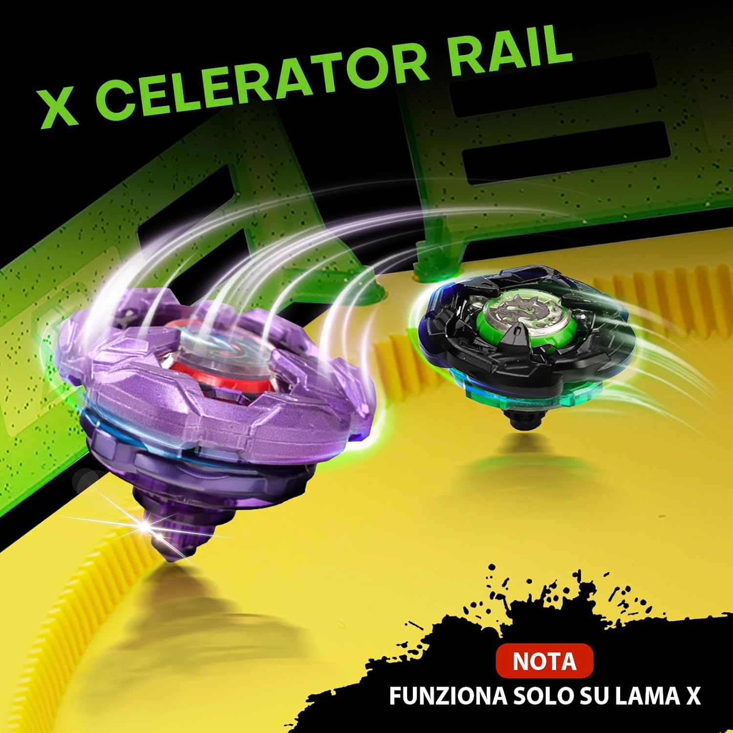 🌀【Set Arena da Battaglia X】TUTTO IL NECESSARIO PER BATTAGLIE EPICHE – Il set include 6 trottole da combattimento, 2 lanciatori e 1 arena da battaglia X Stadium. Perfetto per sfide spettacolari tra amici o in famiglia! Sei pronto a dimostrare le tue abilità nell’arena? 🌀【X Acceleration Rail】– L'accessorio X Acceleration Gear rende i combattimenti ancora più avvincenti. Quando l'ingranaggio della trottola si aggancia alla guida X, la velocità in avanti aumenta drasticamente. Compatibile solo con la serie Gryo X. 🌀【Denti in Metallo e Struttura Resistente】Le nostre trottole X sono dotate di denti in metallo e una struttura rinforzata in plastica dura, offrendo una durata estrema e resistenza all’usura. Il design moderno con colori vivaci le rende ancora più accattivanti. Un gioco che stimola la strategia e il senso di competizione nei bambini. 🌀【Adatto a Principianti e Esperti】Che tu sia un principiante o un veterano delle battaglie con trottole, questo set è perfetto per ogni livello di abilità. L’arena solida e i lanciatori inclusi ti permettono di affrontare sfide entusiasmanti e migliorare le tue tecniche. 🌀【Regalo Perfetto dai 6 Anni in su】Un’idea regalo ideale per bambini dai 6 anni in su appassionati di sfide e azione. Promuove il pensiero strategico, la coordinazione e garantisce ore di divertimento.