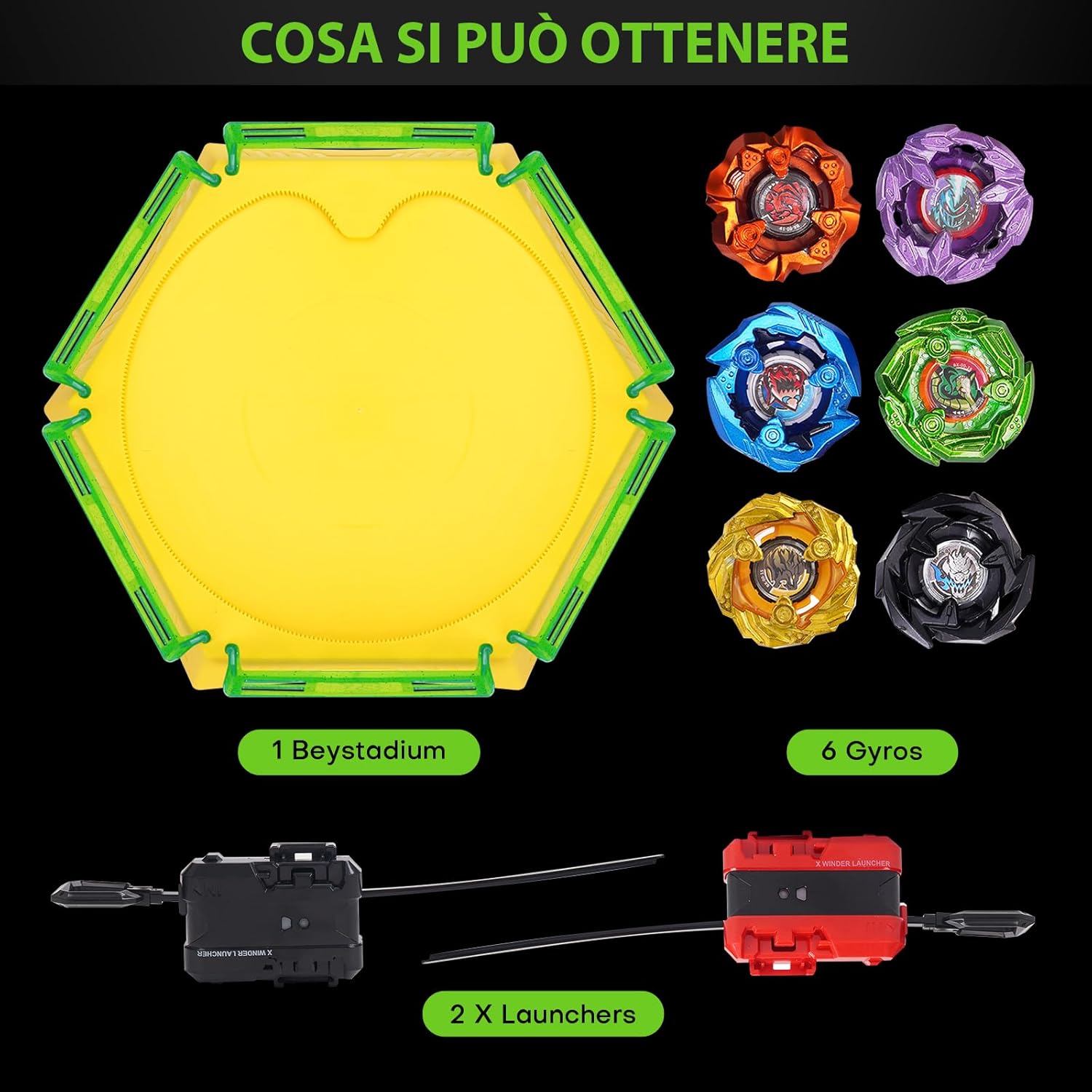 X Trottola Stadio Set da Battaglia con X Acceleration Rail - 6 trottole, 2 lanciatori e stadio, arena di battaglia per bambini dai 6 anni in su, giocattolo da combattimento per ragazzi
