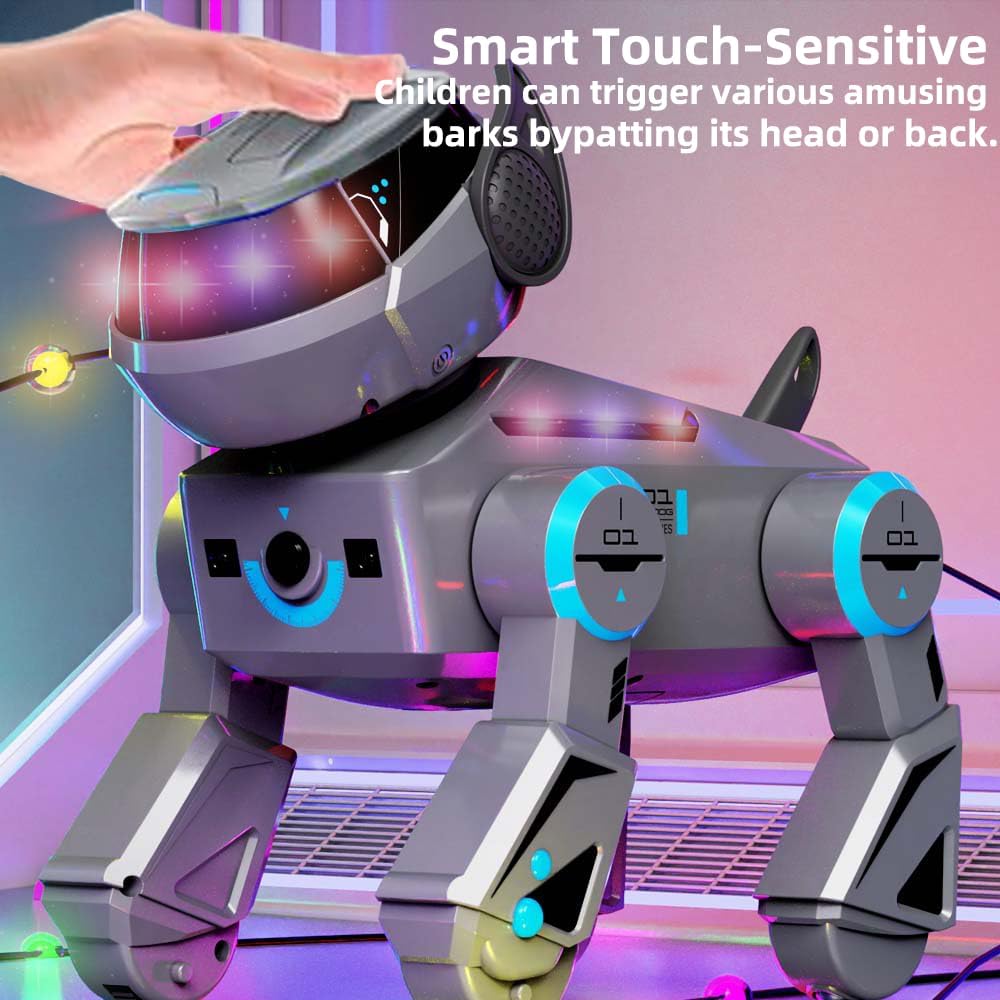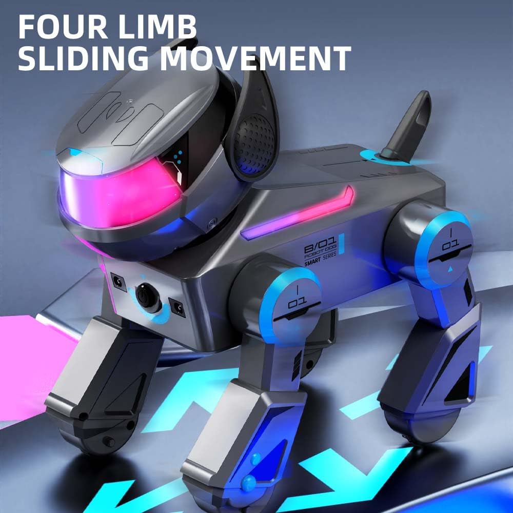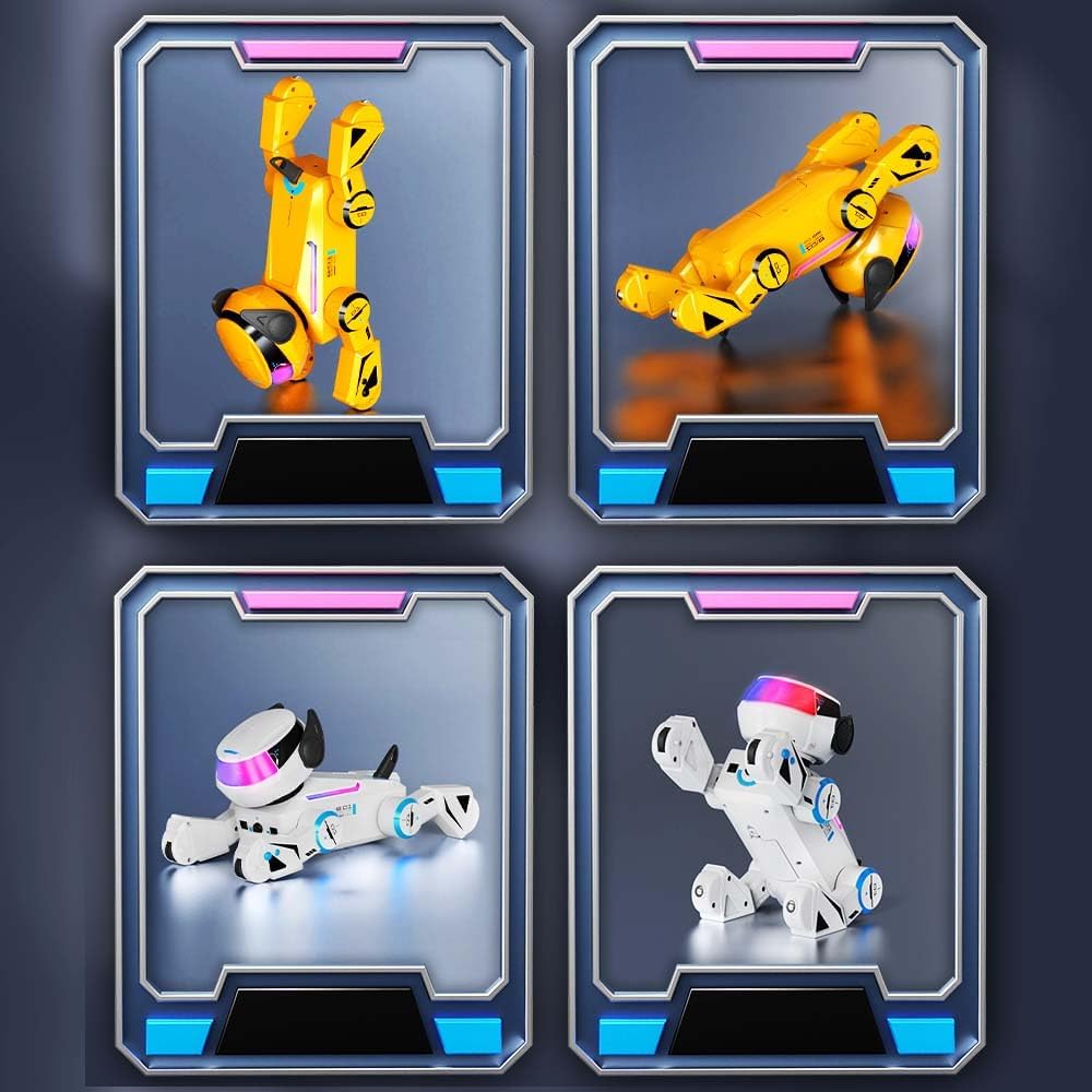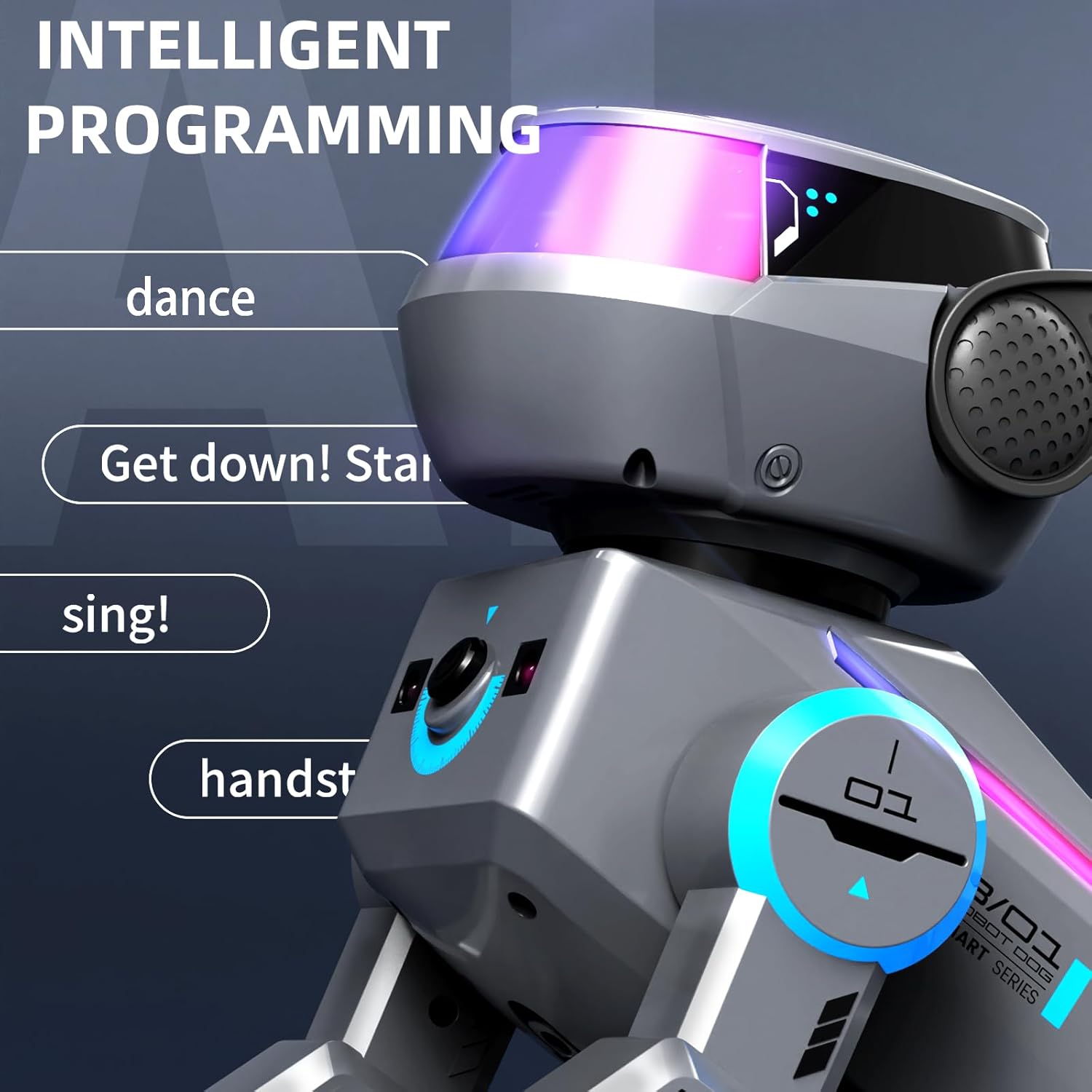 Cane robot radiocomandato con funzioni di contatto testa e schiena: questo è un cane robot telecomandato di recente con luci LED colorate su occhi e corpo. Dotato di sensori tattili avanzati, i bambini possono innescare vari suoni divertenti da abbaiare accarezzando delicatamente la testa o la schiena. Programmazione intelligente: il cane robot telecomandato dispone di un sistema di programmazione integrato. Utilizzando i segnali di programmazione tramite l'app, il cane robot può eseguire una serie di azioni, come: B. salutare, sedersi, girare e fare flessioni. Dopo la programmazione, premere il pulsante per dimostrare l'azione. Altoparlante per cani robotici: tenere premuto il pulsante Bluetooth sul telecomando per 3 secondi. Il cane robot passa alla modalità di accoppiamento, con le luci lampeggianti sul suo corpo in diversi colori. Accendi il Bluetooth del tuo telefono e collegalo a "Cyberdog" per trasformarlo immediatamente in un altoparlante wireless! Riproduci tutto ciò che ti piace: canzoni per bambini, storie, fiabe, musica pop, podcast o audiolibri. Dotato di una batteria da 3,7 V da 1200 mAh, offre un tempo di riproduzione di 50 minuti. Multifunzionale: il cane robot esegue diverse opere d'arte come stand delle mani, rotazioni, capriole, programmazioni, cantare e ballare e preparare il vostro bambino un divertimento senza fine. Il suo altoparlante integrato di alta qualità riproduce musica dinamica e balla in modo flessibile al tatto. Regalo perfetto: questo cane robot radiocomandato viene fornito in un'elegante confezione ed è quindi un regalo ideale per compleanno, Natale, Halloween, feste per ragazzi e ragazze dai 3 ai 12+. È molto interattivo e divertente ed è il compagno perfetto per crescere con tuo figlio e ravvivare feste e feste di famiglia!