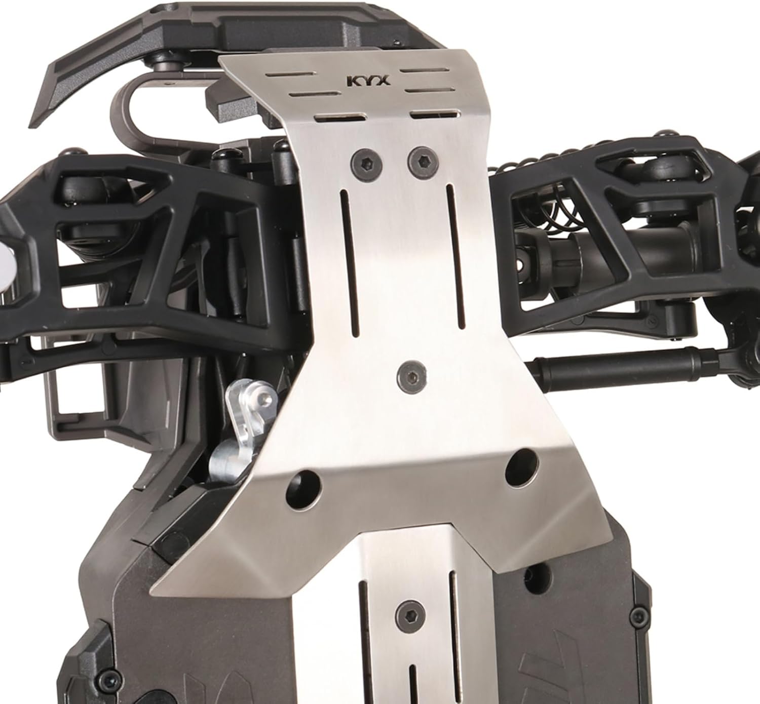 La piastra dell'armatura del telaio RC è compatibile con l'auto telecomandata Traxxas Mini Maxx. È finemente lavorato e leggero, rendendolo un buon accessorio per modificare e aggiornare le auto telecomandate. Il kit di piastra di protezione per auto Mini Maxx è realizzato in acciaio inossidabile, resistente e non facile da danneggiare. La protezione del telaio Mini Maxx può proteggere efficacemente il telaio da ghiaia, fango e altri detriti stradali. Il peso aggiunto della piastra di protezione del telaio abbassa il baricentro, migliorando così la stabilità e la trazione durante le manovre su terreni accidentati. Facile da installare, adatto per gli appassionati di modifica fai da te, non sono necessari strumenti complicati e l'installazione può essere facilmente completata.