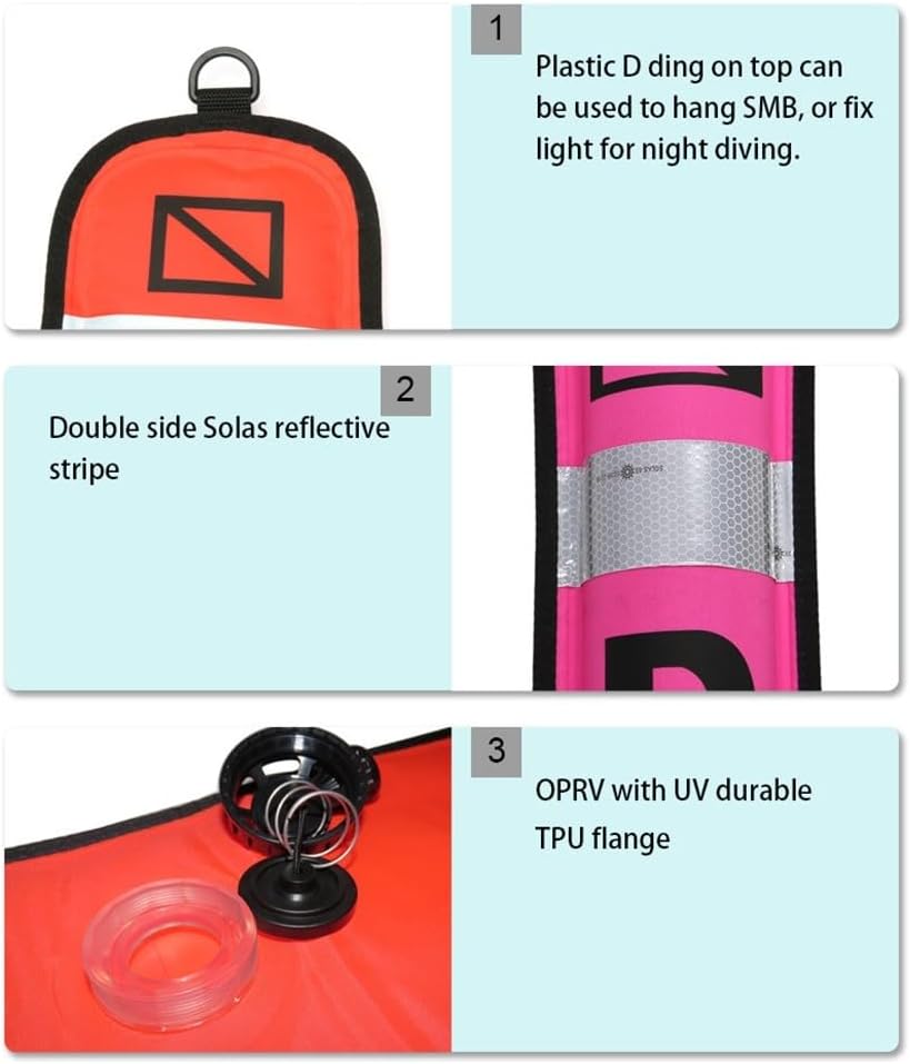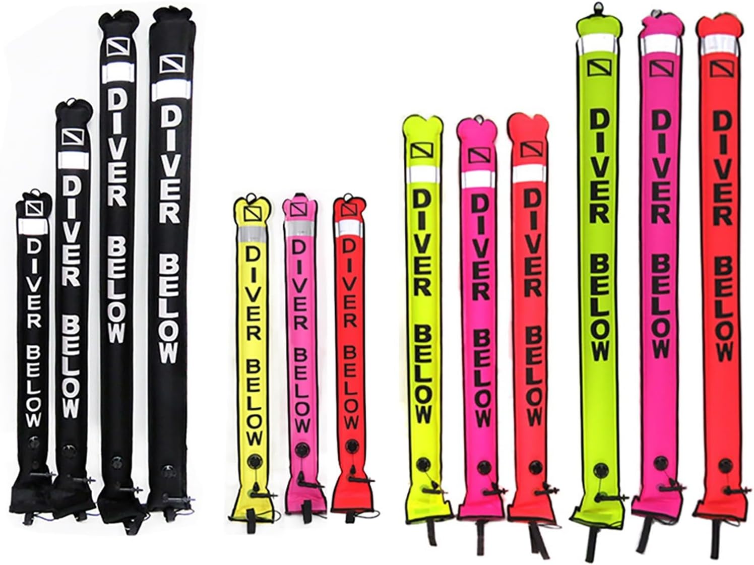 Segnale di salsiccia gonfiabile per immersioni subacquee Realizzato in pratico tessuto di nylon 210D con strato in TPU, questo segnale di salsiccia di sicurezza è progettato per le immersioni subacquee. Disponibile in diverse misure: 120 x 15 cm/120 x 18 cm/150 x 15 cm/150 x 18 cm/180 x 15 cm/180 x 18 cm. Scegli tra una varietà di colori: arancione, giallo, rosa o nero. Fornisce galleggiabilità di backup e migliora la sicurezza durante le immersioni. La confezione include il galleggiante Xiangba.