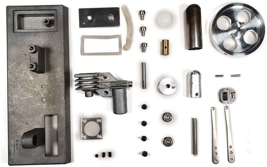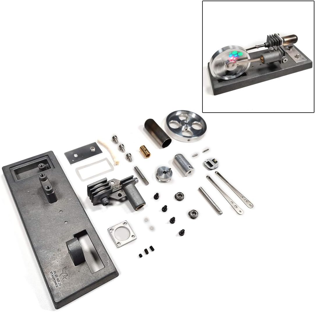 γ Tipo motore Stirling: il volano luminoso emette luce colorata durante la rotazione. Pieno di senso meccanico del metallo e senso della scienza e della tecnologia, è un eccellente modello di decorazione elegante Strumento educativo: la versione di montaggio fai da te offre spazio sufficiente per il funzionamento manuale. Promuovi la tua immaginazione e creatività per realizzare i tuoi sogni tecnici Valore: costruisci modelli a mano e goditi il divertimento fai da te. Pratica abilità pratiche, comprendi e impara la struttura e i principi del motore Stirling. Allo stesso tempo, grazie alla sua alta qualità e al suo bell'aspetto, può anche essere utilizzato come decorazione tecnologica e può anche servire come regalo per gli amici Come usare: i disegni di montaggio e gli strumenti di installazione sono allegati. Kit di montaggio fai-da-te può essere fatto riferendosi alle istruzioni. Posizionare il motore Stirling su un tavolo orizzontale, iniettare alcol al 95% nella lampada ad alcool (non più di 2/3), accendere la lampada dell'alcool e posizionarla sotto il cilindro caldo per preriscaldare per 30 secondi e ruotare il volano a mano per iniziare Lavorazione di qualità: la macchina è realizzata in acciaio inossidabile e lega di alluminio. La superficie è squisita e piena di lucentezza metallica. La macchina funziona senza problemi e in modo affidabile