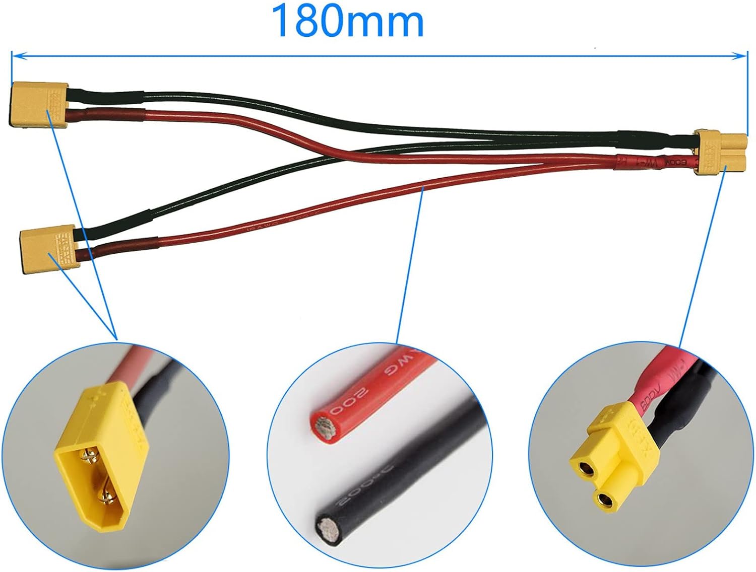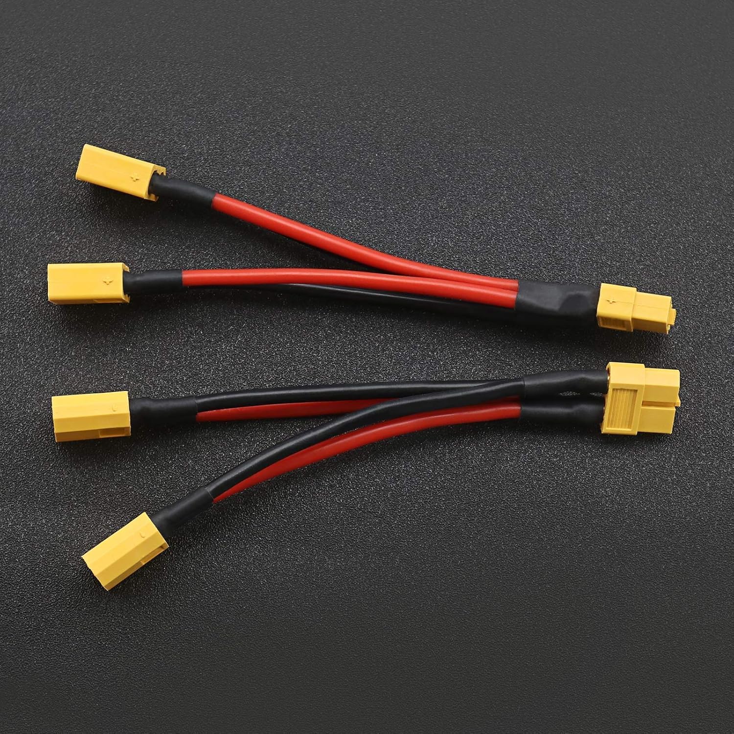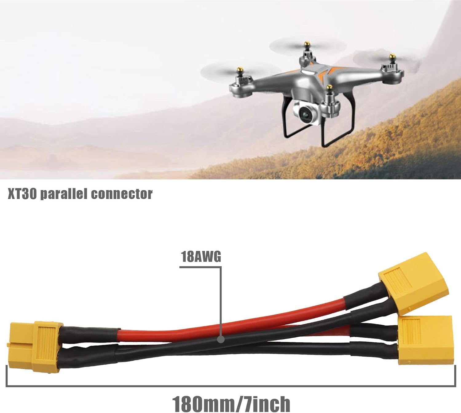 Utilizzare due batterie con la stessa capacità mAh a doppia tensione al connettore XT30 su ESC/caricatore Adatto per UAV RC, auto, caricabatterie, batteria, motore ecc. XT30: calibro 8AWG. Filo parallelo da 2 pin a 1 femmina Realizzato in morbido cavo in silicone resistente al calore Confezione: 2 connettori XT-30 da una femmina a due maschi.