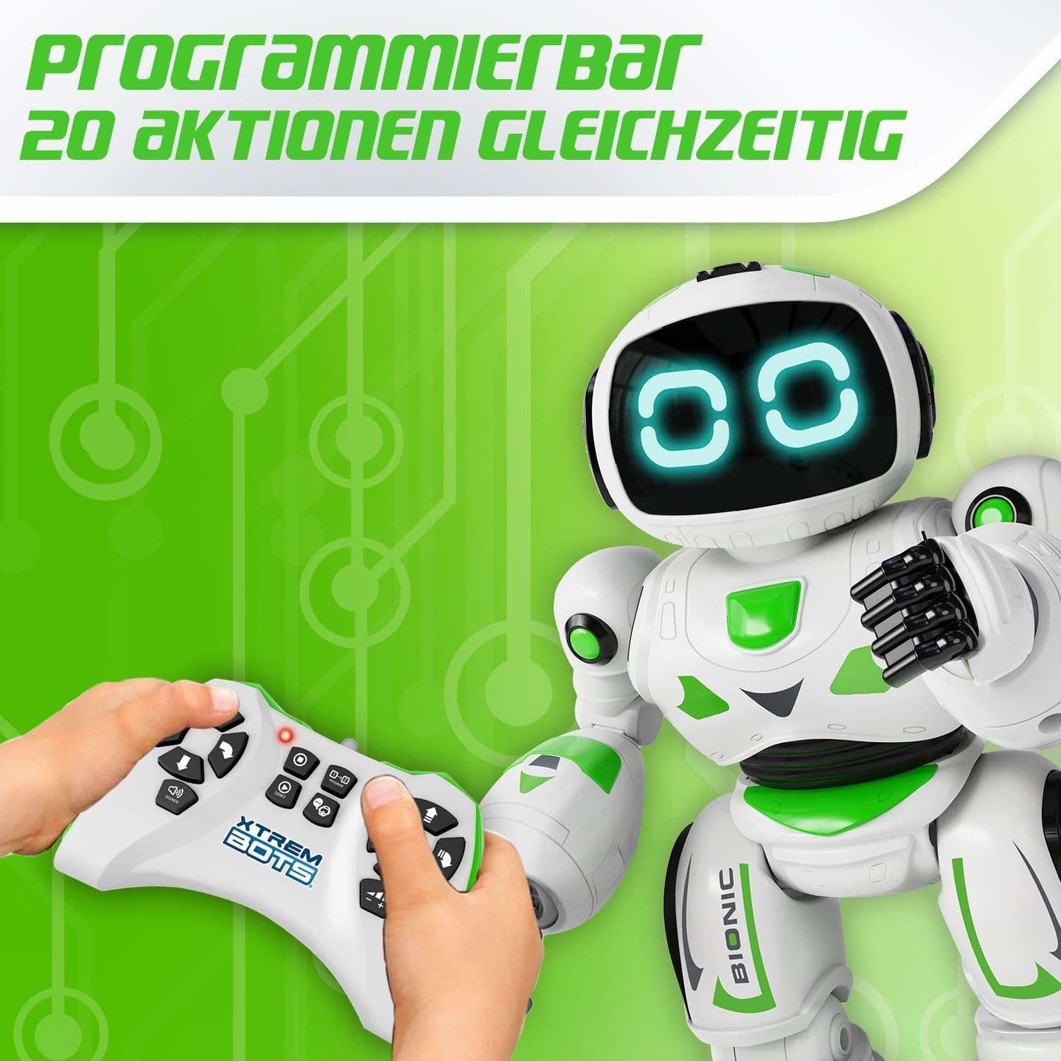 🤖 ROBOT KIDS 🤖 Divertiti e goditi ore di intrattenimento mentre giochi e programmi. Questo robot all'avanguardia per bambini dai 6 anni in su offre oltre 15 funzionalità, tra cui luci LED e suoni del robot. Giocattolo robot sviluppato e superiore, offre intrattenimento infinito con due modalità di movimento: camminata e planata. 💻 ROBOT PROGRAMMABILE 💻 Robot programmabile fino a 20 movimenti con Bionic, uno dei robot giocattolo Xtrem Bots per bambini. Questo robot telecomandato è dotato di suoni, musica robotica e luci LED. 🎮 ROBOT TELECOMANDO 🎮 Dotato di robot intuitivi per bambini, questo robot giocattolo per bambini offre facilità d'uso, rendendolo un'opzione versatile tra i bambini robot dagli 8 anni in su. Robot con telecomando Migliora il tempo di gioco grazie al controllo continuo delle sue oltre 15 funzioni. 🚶 CAMMINA E MUOVERSI 🕺 Questo robot per bambini dai 6 anni in su si controlla tramite il telecomando e può programmare fino a 20 movimenti con più di 15 funzioni. Dispone inoltre di 2 modalità di movimento: camminata e planata. 🔊 RUMORI E LUCI 🚨 Questi robot per bambini dai 5 anni in su producono rumori robotici e hanno occhi di piombo lampeggianti. Questo robot telecomandato ti sorprenderà. Con giocattoli robot, musica e luci LED luminose, questo giocattolo robot attira l'attenzione e stimola la creatività. È uno dei giocattoli robot perfetti e delle opzioni di giocattoli per bambini per il coinvolgimento sensoriale e il gioco fantasioso.