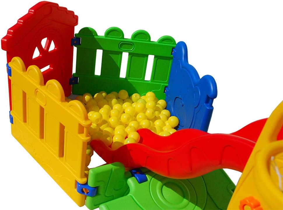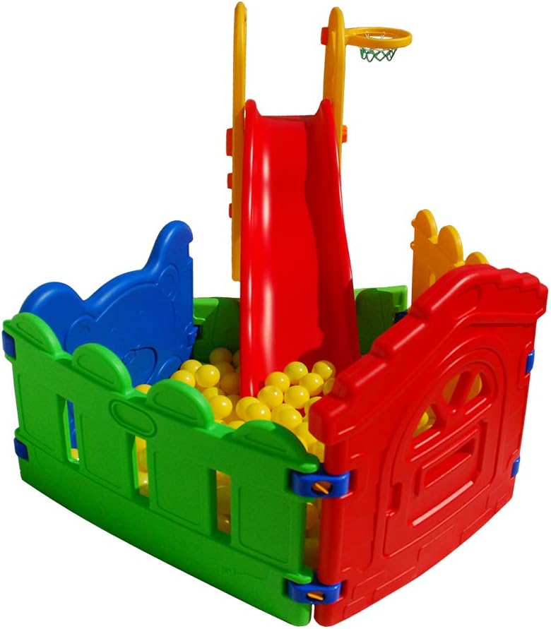 Gioco multiuso per intrattenere i piu piccoli Robusto e sicuro a tre gradini Ha una bellissima e sicura recinzione con le palline Misure 255 x 130 x 110 cm circa