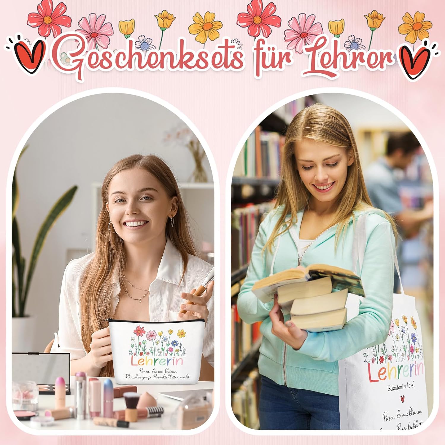 Set splendidamente confezionato: questo regalo di addio per educatore include 1 portachiavi per insegnante, 1 borsa di stoffa, 1 borsa per cosmetici, 1 tessera dell'insegnante e una busta. Ogni piccolo oggetto è stato accuratamente selezionato per far sentire il tuo insegnante apprezzato, apprezzato ed esprimere gratitudine all'insegnante. Può essere usato come regalo unico per la laurea dell'insegnante. Design raffinato: borse per insegnanti, borse da toilette per insegnanti e biglietti di ringraziamento sono stampati con parole di ringraziamento e motivi floreali colorati. I beauty case aiutano gli insegnanti a organizzare i cosmetici o i piccoli oggetti, mentre le buste e i biglietti possono essere scritti a mano con benedizioni e ringraziamenti. Questi piccoli oggetti pieni di sole e di colori accompagnano la vita quotidiana dell'insegnante. Portachiavi di ringraziamento: il regalo di ringraziamento per gli insegnanti contiene anche un'ape e un ciondolo a forma di cuore. Il portachiavi dell'insegnante è inciso su entrambi i lati con parole di gratitudine [L'insegnante che crea grandi personalità dalle piccole persone] [Grazie per avermi aiutato a crescere], che può essere dato come regalo di addio agli insegnanti. Il portachiavi ha un diametro di circa 3 cm. Borsa a tracolla ecologica e borsa per cosmetici: il set regalo per maestre dell'asilo comprende una robusta borsa di tela e una borsa per cosmetici, pratica ed ecologica, ideale per gli insegnanti per trasportare libri o fare la spesa. La dimensione della borsa a tracolla in tessuto è 38 × 42 × 8 cm, la borsa per cosmetici offre spazio sufficiente. Utilizzo versatile: i regali per gli insegnanti di questo set sono molto apprezzati. Possono essere indossati il giorno dell'insegnante, i compleanni, il Natale, la laurea, il pensionamento o qualsiasi altra occasione per esprimere gratitudine. È un regalo premuroso e significativo