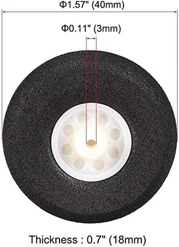 [SPECIFICHE] - Diametro esterno: 1,57 pollici (40 mm); Spessore: 0,7" (18 mm); Diametro del foro dell'asse: 0,11 pollici (3 mm). [APPLICAZIONE] - Compatibile con modelli RC fai-da-te, come giocattoli di aeroplani RC, elicotteri RC, macchinine, ecc. [VANTAGGIO] - Pneumatici in spugna nera liscia preassemblati. Queste ruote di aeroplani modello RC conferiscono al tuo modello un aspetto sportivo. Sono progettate pensando ai modelli elettrici. [NOTA] - Nota: colpi di luce e display diversi possono far sì che il colore dell'immagine sia leggermente diverso da quello reale., [PACCHETTO INCLUSO] - 2 pezzi di ruote per aeroplani RC da 1,57 pollici di diametro.