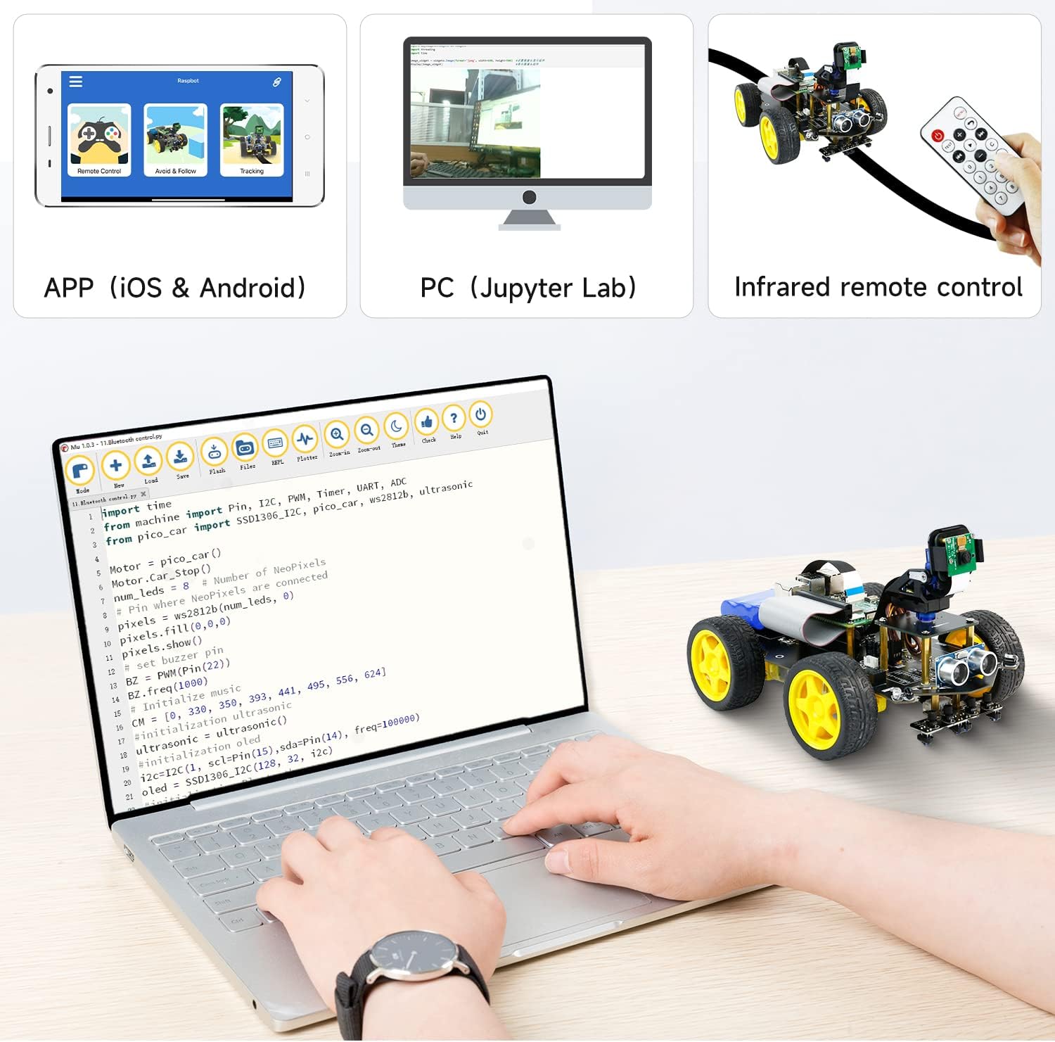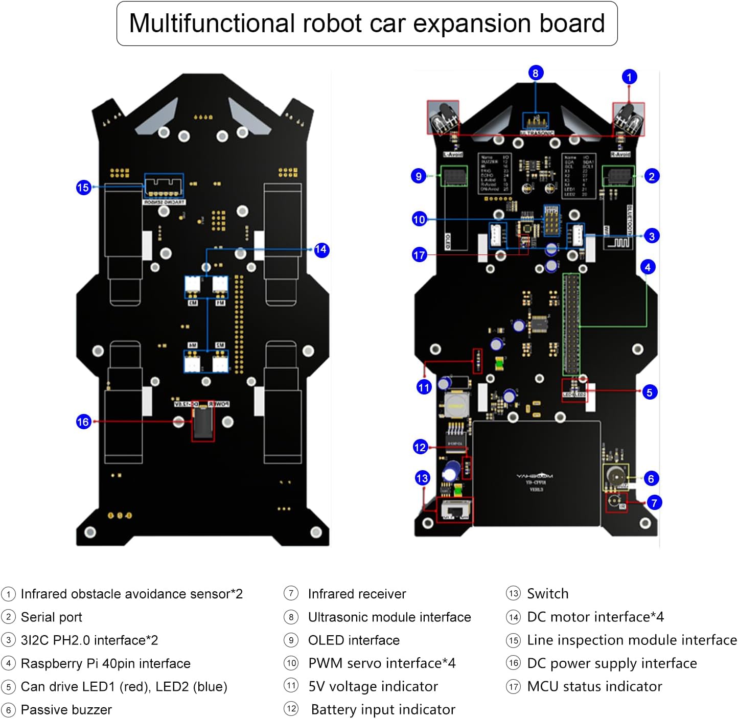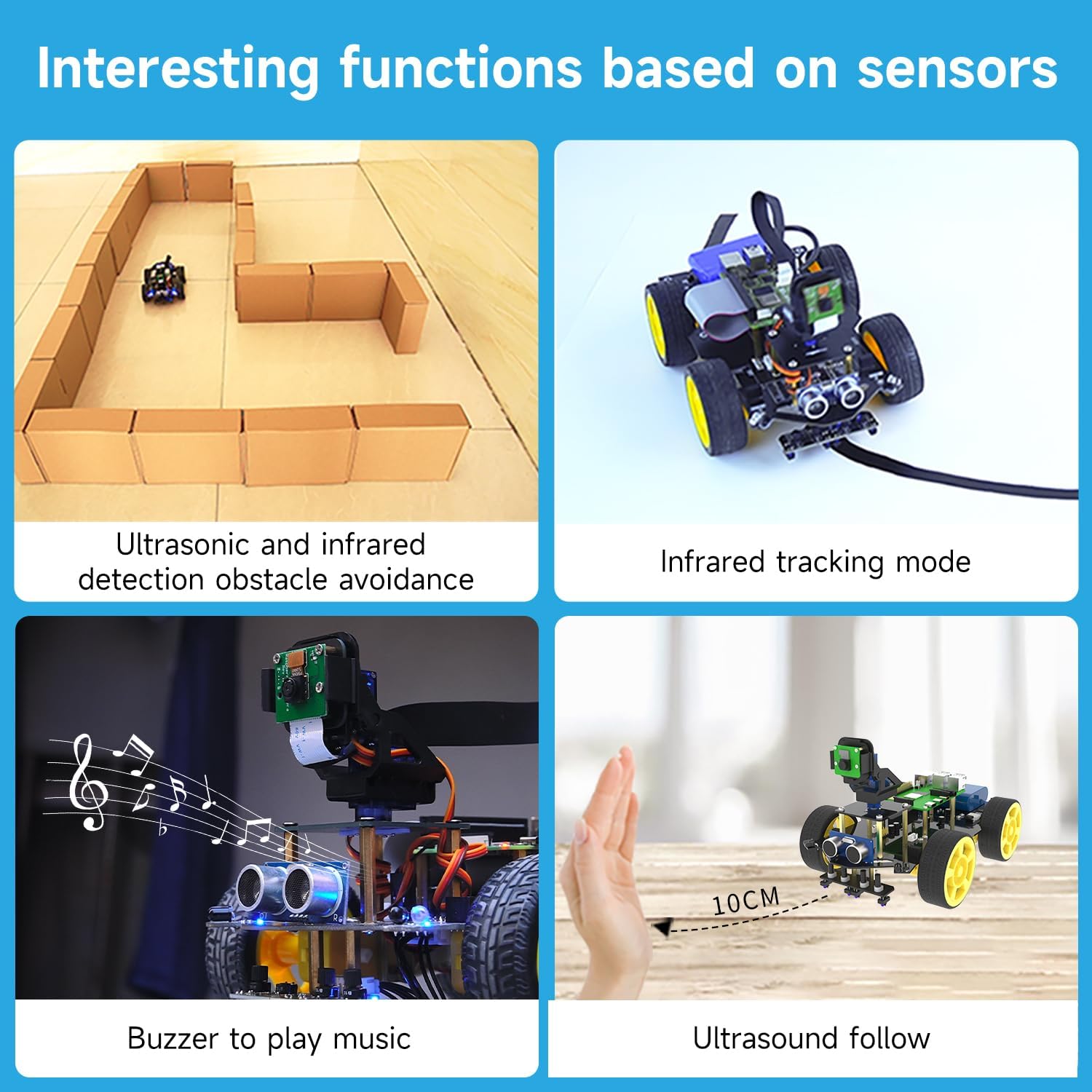 【STEAM PROGRAMMING DIY ELECTRONICS KIT】Based on the complete program of Raspberry Pi 5 4GB, the perfect robot kit in Python for teens and adults, enjoy installing, programming and controlling the robot car (choose from RPi 5, Raspberry Pi) Masu). If you want to make it compatible with the Raspberry Pi 4b, you will need to contact Yahboom to send a cable to make it compatible with the Pi4B. 【Struttura semplice, facile da montare, esperienza veloce】 Yahboom fornisce istruzioni di installazione e video di installazione per aiutare gli utenti a completare rapidamente l'installazione. Allo stesso tempo, ci sono un gran numero di casi tutorial online per fornire indicazioni tecniche, in modo da diventare un principiante dell'IA al minor costo. 【Ricco design del circuito】 La scheda di espansione dell'auto robotica è dotata di ultrasuoni, evitamento degli ostacoli a infrarossi, cicalino, LED e riserve IIC, porta seriale e interfaccia dello sterzo. La scheda di espansione concentra la maggior parte della progettazione del circuito e gli utenti possono anche collegare sensori esterni per completare l'espansione del progetto. 【Articoli di apprendimento】 L'interessante gameplay visivo dell'intelligenza artificiale del kit robot intelligente: riconoscimento della targa, tracciamento mobile, riconoscimento visivo, guida automatica, controllo dei gesti, ecc. Ci sono più possibilità nello stesso tipo di prodotti. Il telecomando wireless è realizzato attraverso tre metodi di controllo: APP per telefono cellulare, telecomando a infrarossi e PC (Jupyter Lab), che è diventata la scelta della maggior parte delle famiglie e delle scuole.