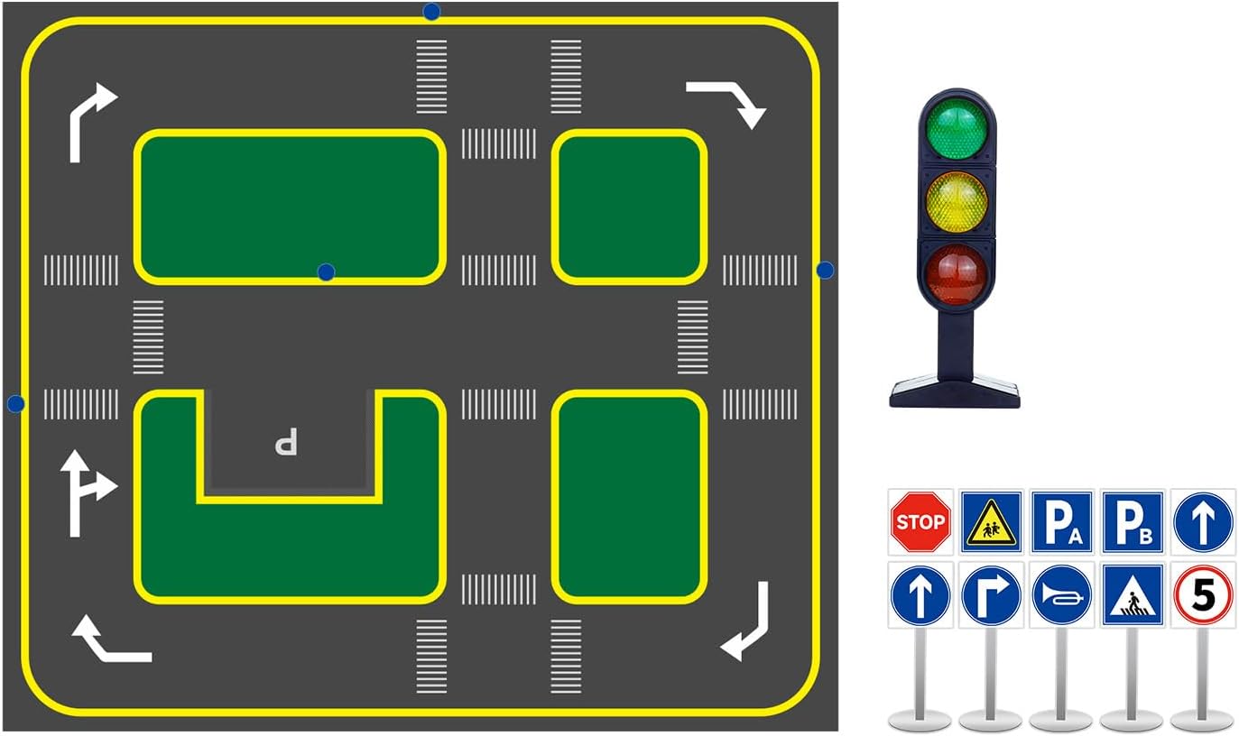 Simulates real-world traffic scenarios, including parking lots, sidewalks, and T-junctions. Suitable for autonomous driving robots. Made of durable, waterproof materials and high-quality UV printing technology, it boasts a beautiful, durable appearance. Includes traffic signs and traffic lights for enhanced interactivity. Offers multiple configurations to accommodate vehicles of varying heights. Ideal for teaching, competitions, and autonomous driving model training.
