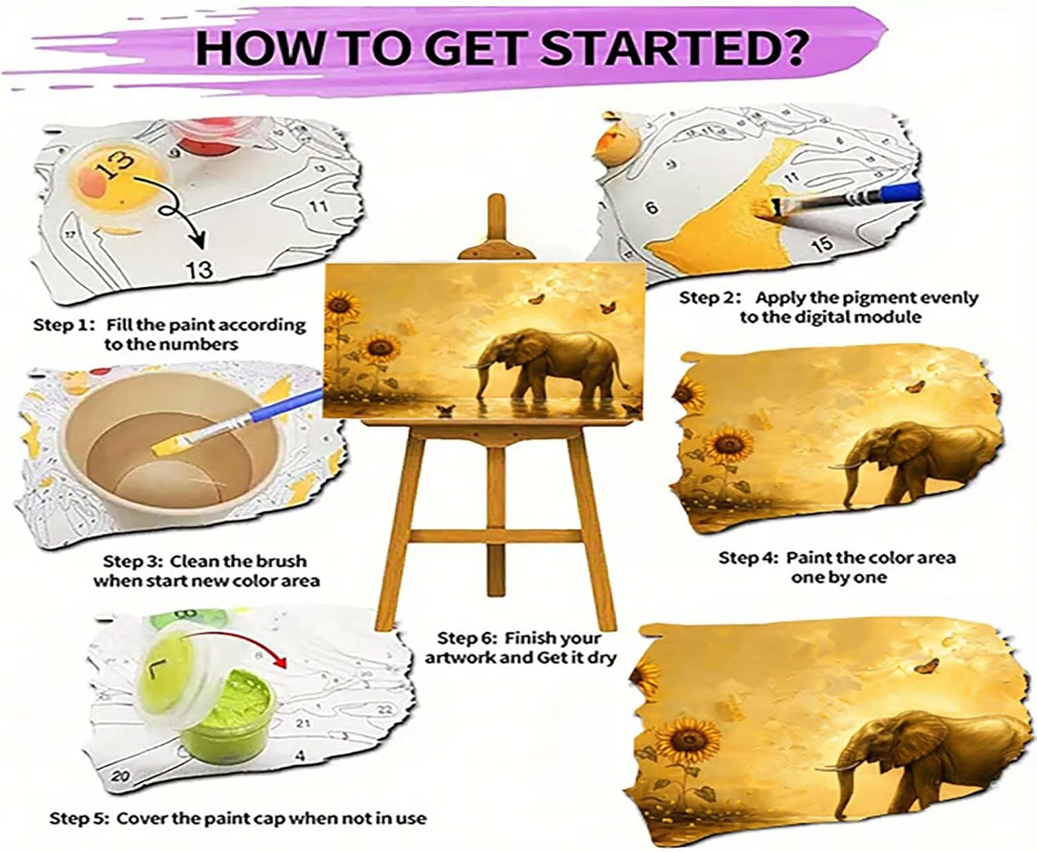 YALNSENN Dipingere con i Numeri - Farfalla, Passatempo per Adulti, Kit Completo, Hobby Creativi - Quadri fai da te 90x40cm senza cornice, Dipingi con i Numeri Adulti Elefante 3-DE