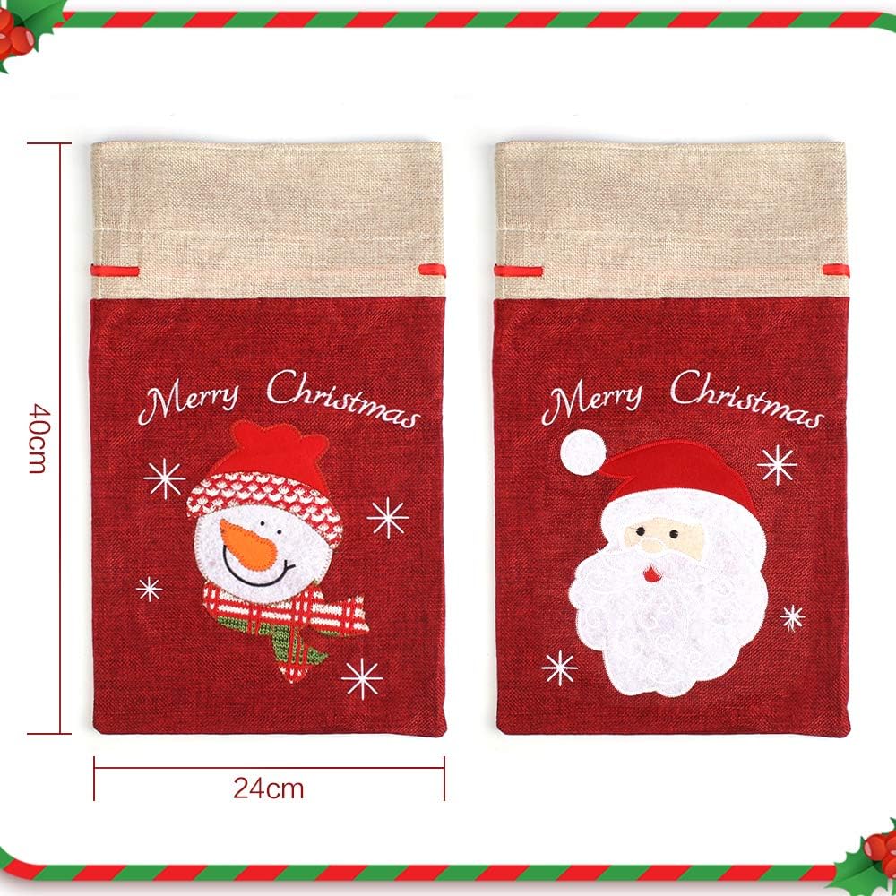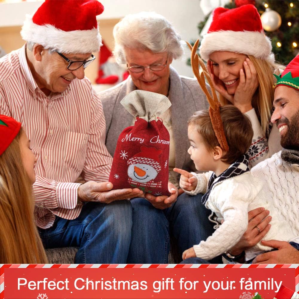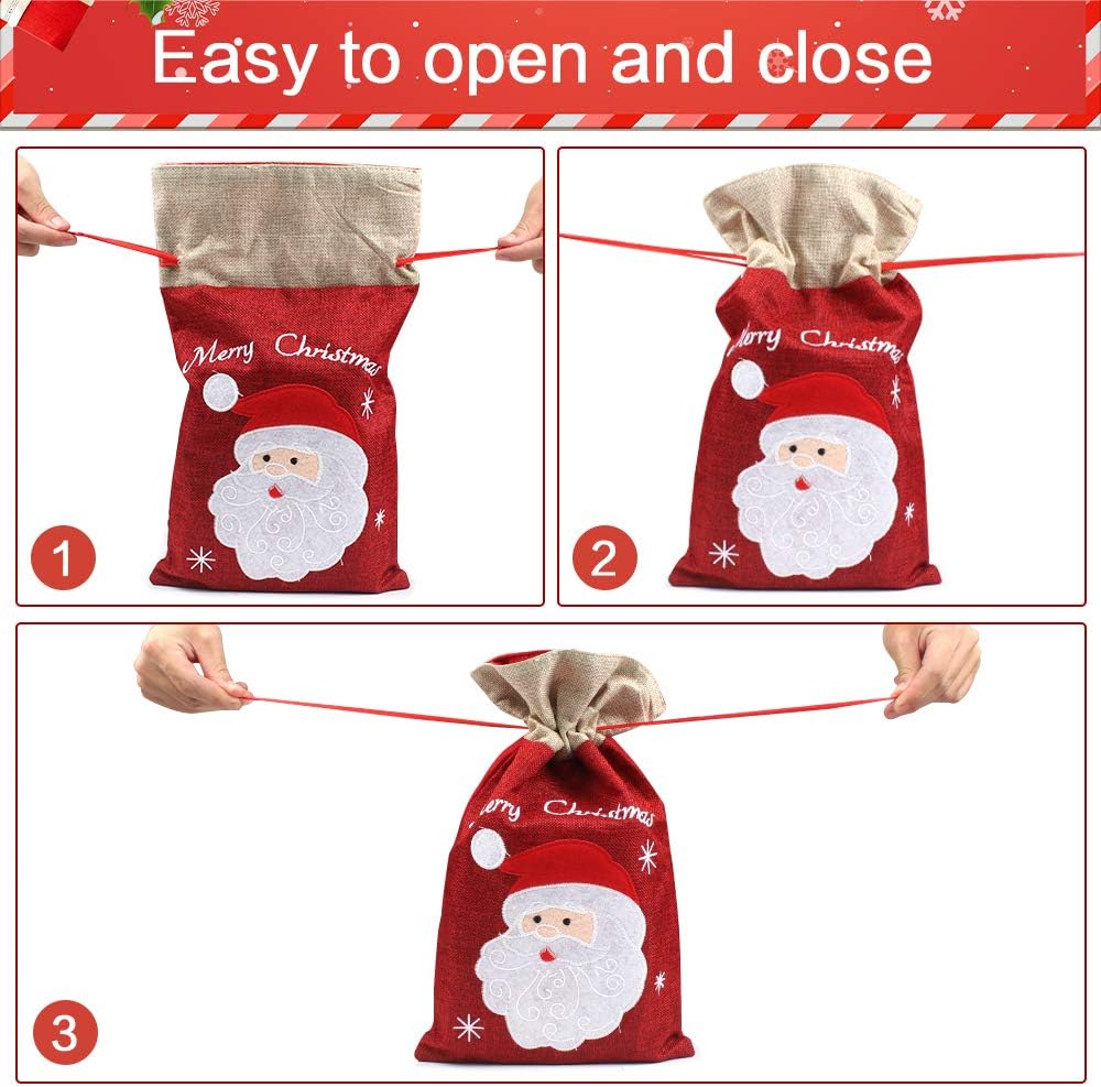 Design intimo: la borsa regalo in iuta utilizza un semplice design con coulisse, che può facilmente stringere la borsa ed evitare la perdita di oggetti. È molto semplice da usare e può essere aperto e chiuso facilmente. Materiale di alta qualità: sacchetto regalo di Natale realizzato in tela di alta qualità, che ha una buona permeabilità all'aria e può essere lavato. È morbido e non si rompe facilmente e può essere riutilizzato. il design con coulisse ti libera le mani ed è abbastanza leggero da farti sentire rilassato. Motivi a tema natalizio: il colore del tema della borsa in cotone e lino è il rosso che rappresenta il Natale, e su di esso sono presenti stampe di Babbo Natale e pupazzi di neve, che possono creare un'atmosfera giubilante e gioiosa, catturare la tua attenzione da qualsiasi angolazione e puoi cambiare un nuovo stile per il tuo spazio di archiviazione. Misura adatta: la dimensione di ogni sacchetto di iuta natalizio è di circa 40 * 24 cm. È molto adatto per preparare regali di Natale per la famiglia, gli amici o i bambini. Può essere utilizzato anche in sacchetti regalo di caramelle, bomboniere, decorazioni per alberi di Natale e decorazioni per finestre. Regalo ideale: 2 sacchi natalizi di Babbo Natale sono squisiti regali di Natale per i bambini. Non solo possono essere utilizzati per contenere regali, ma puoi anche metterli sull'albero di Natale o davanti al camino per decorare la tua casa. È una decorazione essenziale per Natale!