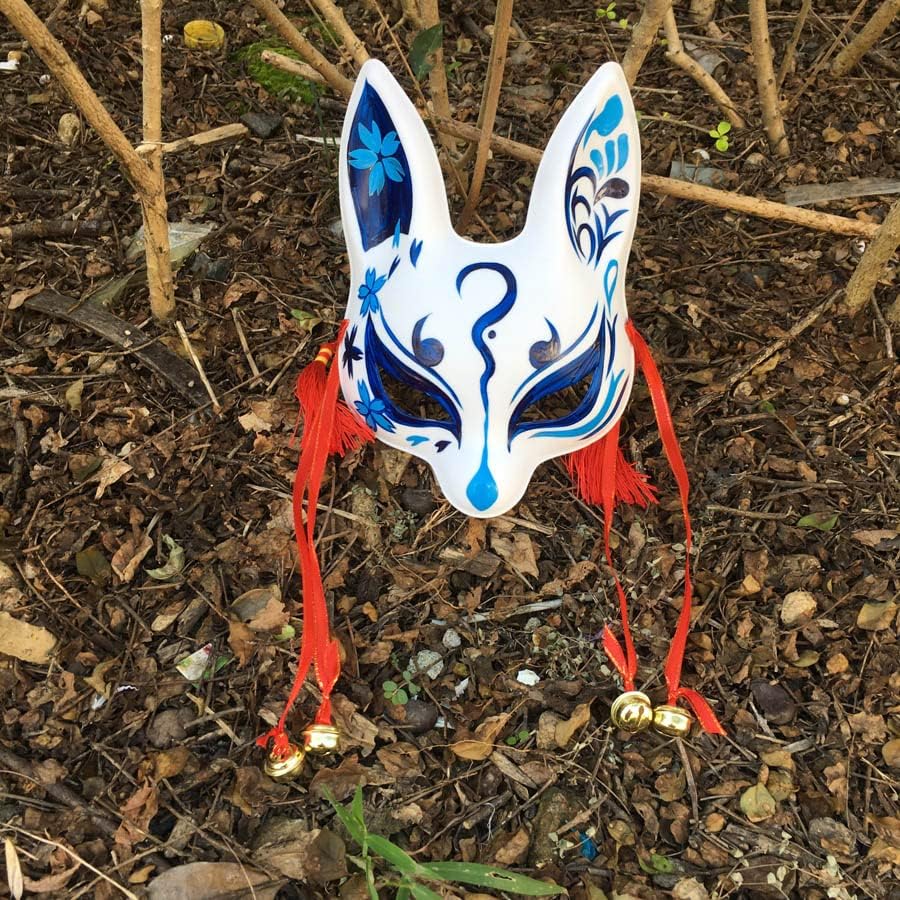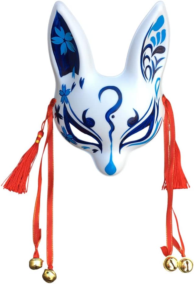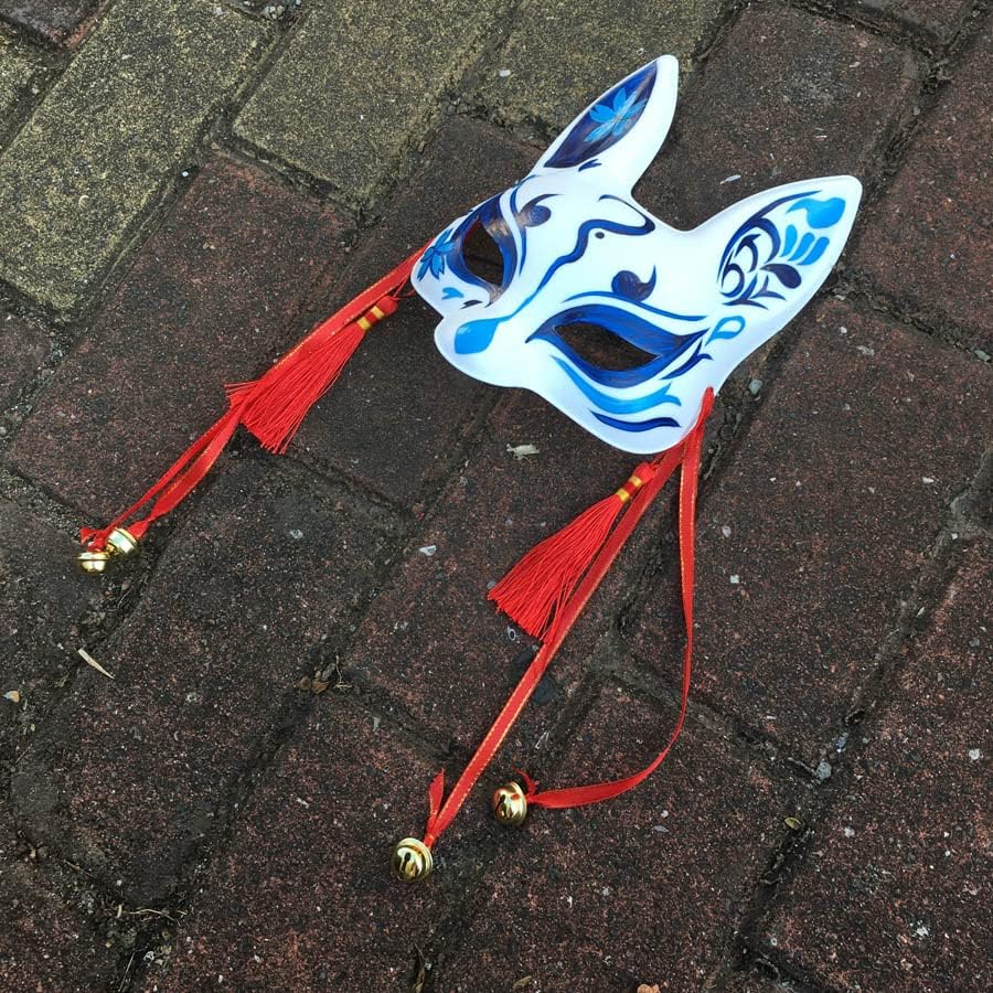 Bellissima maschera da coniglio in stile giapponese in plastica, le decorazioni sono bellissime, è dotata di nastri e campanellini, oltre di un elastico per indossarla, anche se risulta piuttosto scomoda dato che non ha spugne sugli appoggi, invece è ottima da appendere per decorare la stanza.