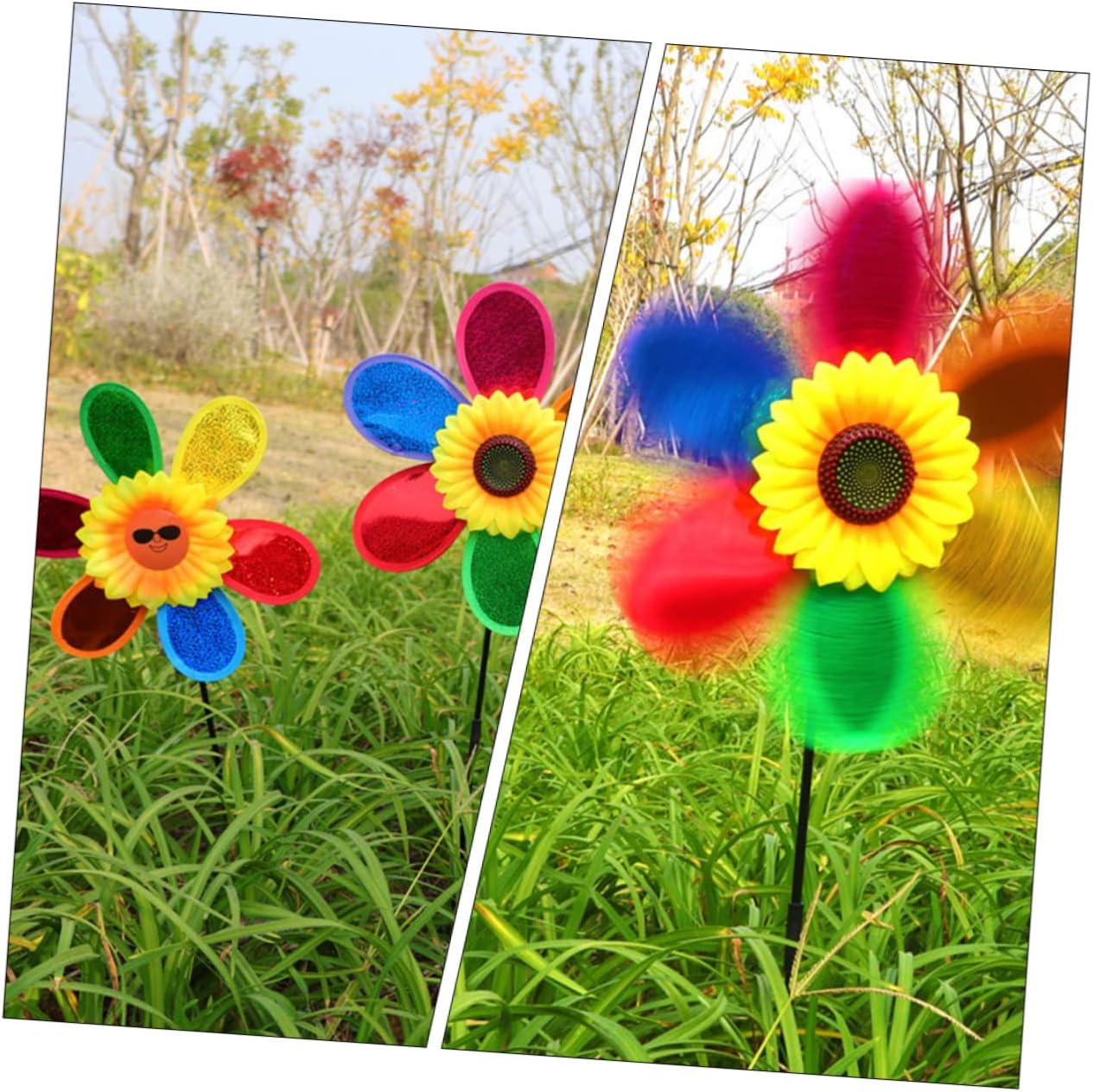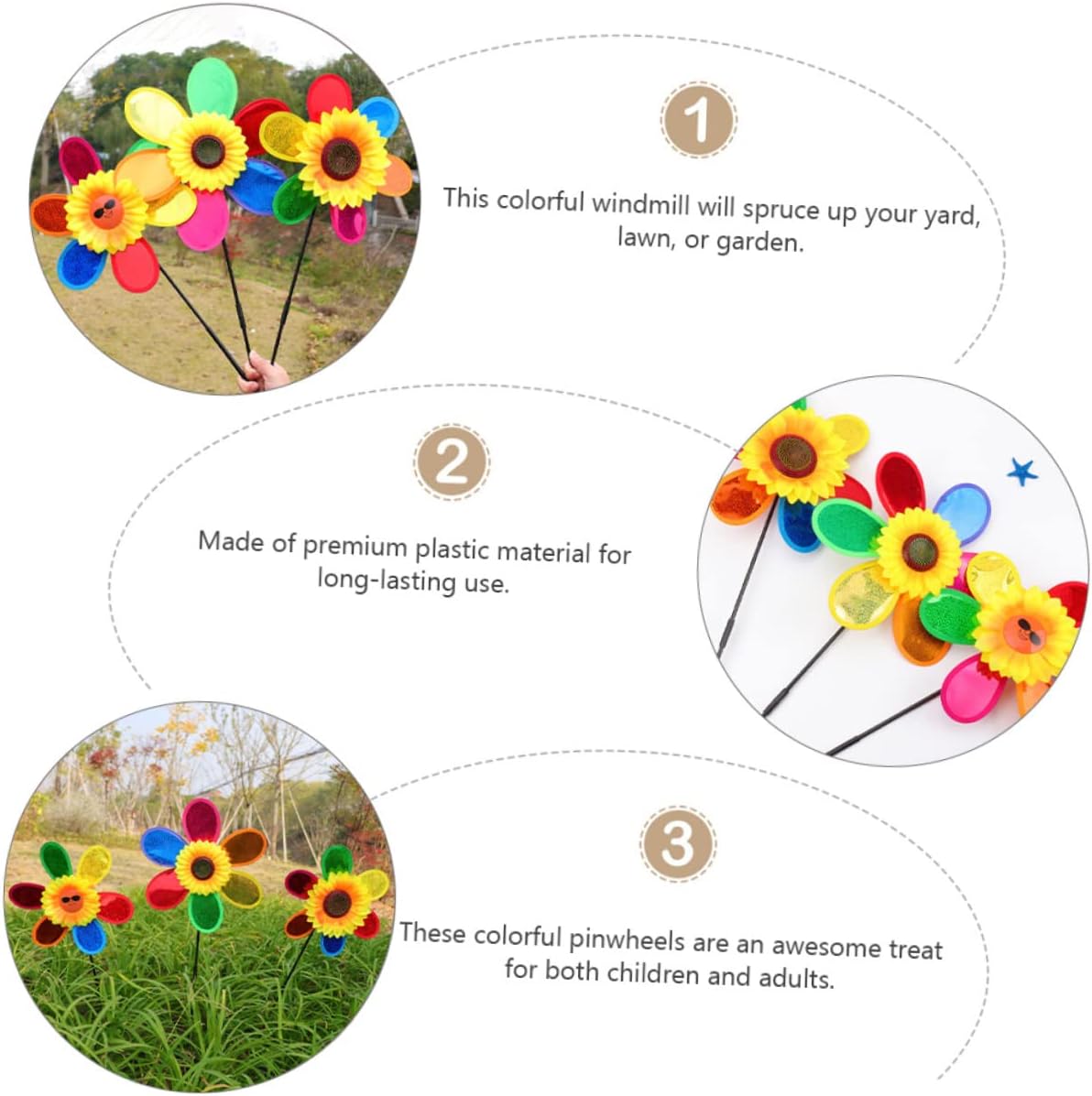 Decorazione a forma di mulino a vento: questo mulino a vento colorato abbellirà il tuo cortile, prato o giardino, mulino a vento rotante Decorazione da giardino: facile da installare, dopo il montaggio fai da te, basta inserire la nel foro di installazione della decorazione da giardino, decorazione da esterno Mulino a vento in plastica: può ruotare per creare un punto focale divertente nel tuo giardino, prato o arbusti, giocattolo del mulino a vento Decorazione a forma di mulino a vento portatile: piantala in giardino o nel cortile anteriore e guardala mentre, in una giornata ventosa, includila come bomboniera nelle feste di compleanno dei bambini, decorazione da giardino Giocattolo per bambini: questi mulinelli sono adatti per l'uso all'aperto e renderanno il tuo giardino speciale rispetto agli altri, mulino a vento di girasole