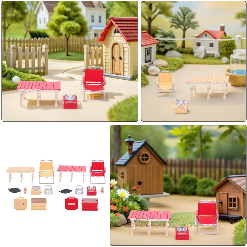 Esperienza di gioco autentica: il set da campeggio della casa delle bambole e il set di griglia in miniatura riproducono la vera attrezzatura da campeggio, rendendo il gioco di finzione più coinvolgente e realistico per i bambini Divertimento portatile: la mini sedia pieghevole e il set da picnic per la casa delle bambole sono leggeri e facili da trasportare, consentendo ai bambini di divertirsi giocando ovunque e in qualsiasi momento Stimola la creatività: il set da cucina in miniatura e l'arredamento da giardino della casa delle bambole ispirano il gioco fantasioso, aiutando i bambini a creare le proprie avventure uniche in campeggio Design salvaspazio: i mobili moderni della casa delle bambole e la statuetta del forno in miniatura sono compatti, il che li rende ideali per piccoli spazi e facili da organizzare Rafforza i familiari: il set di giocattoli da campeggio per bambini e gli accessori da campeggio per case delle bambole offrono opportunità di gioco condiviso, migliorando le relazioni
