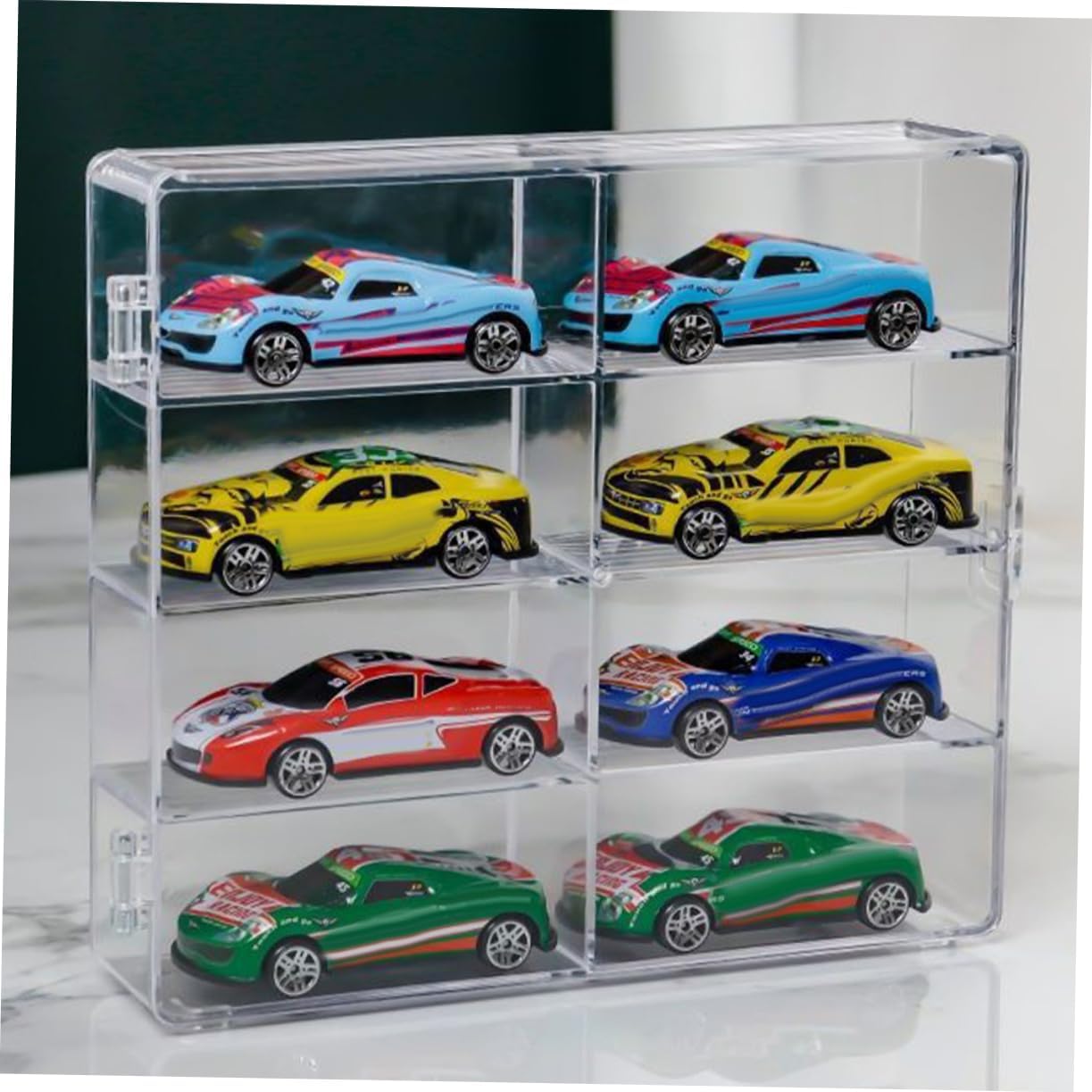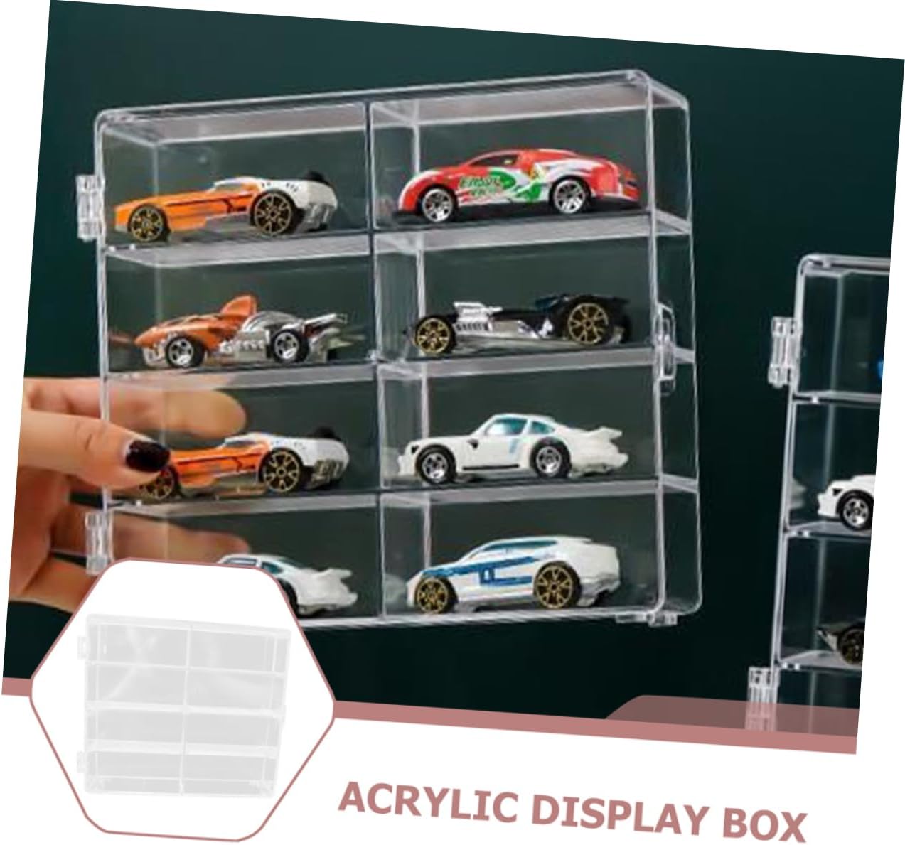 Organizzatore per vetrina trasparente: la vetrina è realizzata in materiale plastico robusto, robusto e sufficientemente trasparente per l'uso in esposizione, mini armadietto da tavolo Vetrina per statuette: il design multifunzionale di questo espositore in plastica consente di esporre e organizzare giocattoli e modellini di auto Vetrina trasparente: il materiale plastico utilizzato nella scatola di immagazzinaggio garantisce un uso duraturo, piccola vetrina Custodia per oggetti artigianali: i bordi del fondo sono dotati di cuscinetti antiscivolo, che consentono alla scatola espositiva di stare in piedi stabilmente sulla scrivania, non facile da scivolare o capovolgere, cartella espositiva artistica Vetrina per giocattoli: la scatola portaoggetti a otto griglie consente di ordinare e classificare facilmente giocattoli e modellini di auto, scatole trasparenti per bomboniere