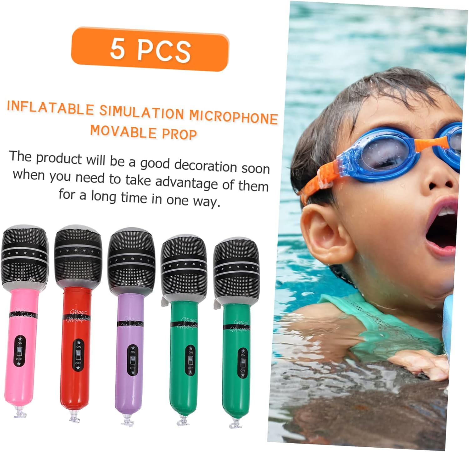 | Componenti inclusi | 5 x giocattoli per microfoni gonfiabili |