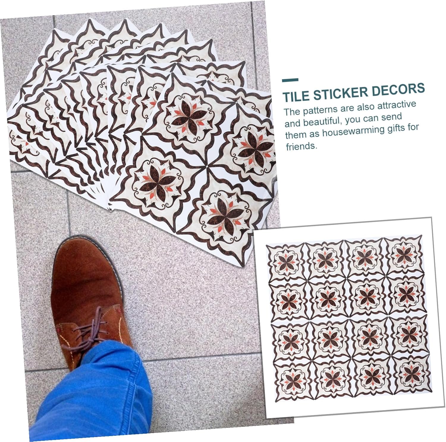 Adesivi decorativi per pavimenti: impermeabili, resistenti all'usura, la superficie è liscia e facile da pulire, delicatamente strofinata, brillante come nuova, adesivi autoadesivi Ornamento adesivo per piastrelle: adesivi per pavimenti autoadesivi e resistenti all'usura che possono essere applicati alle piastrelle in qualsiasi momento e possono anche essere rimossi senza lasciare sporco, adesivi per pavimenti Adesivi per pavimenti domestici: gli adesivi per pavimenti sono realizzati in materiale pvc di alta qualità, non sbiadiscono, sono durevoli e puoi usarli a lungo, adesivi per piastrelle Adesivi per la cucina: elevata durata, rendono il pavimento della tua casa più elegante e bello, ottimo piacere visivo, adesivo per il pavimento del bagno Adesivi impermeabili: sono adatti per decorare la tua camera da letto, il bagno, la cucina, il soggiorno, l'ufficio o la sala da pranzo, decorazioni adesive per piastrelle