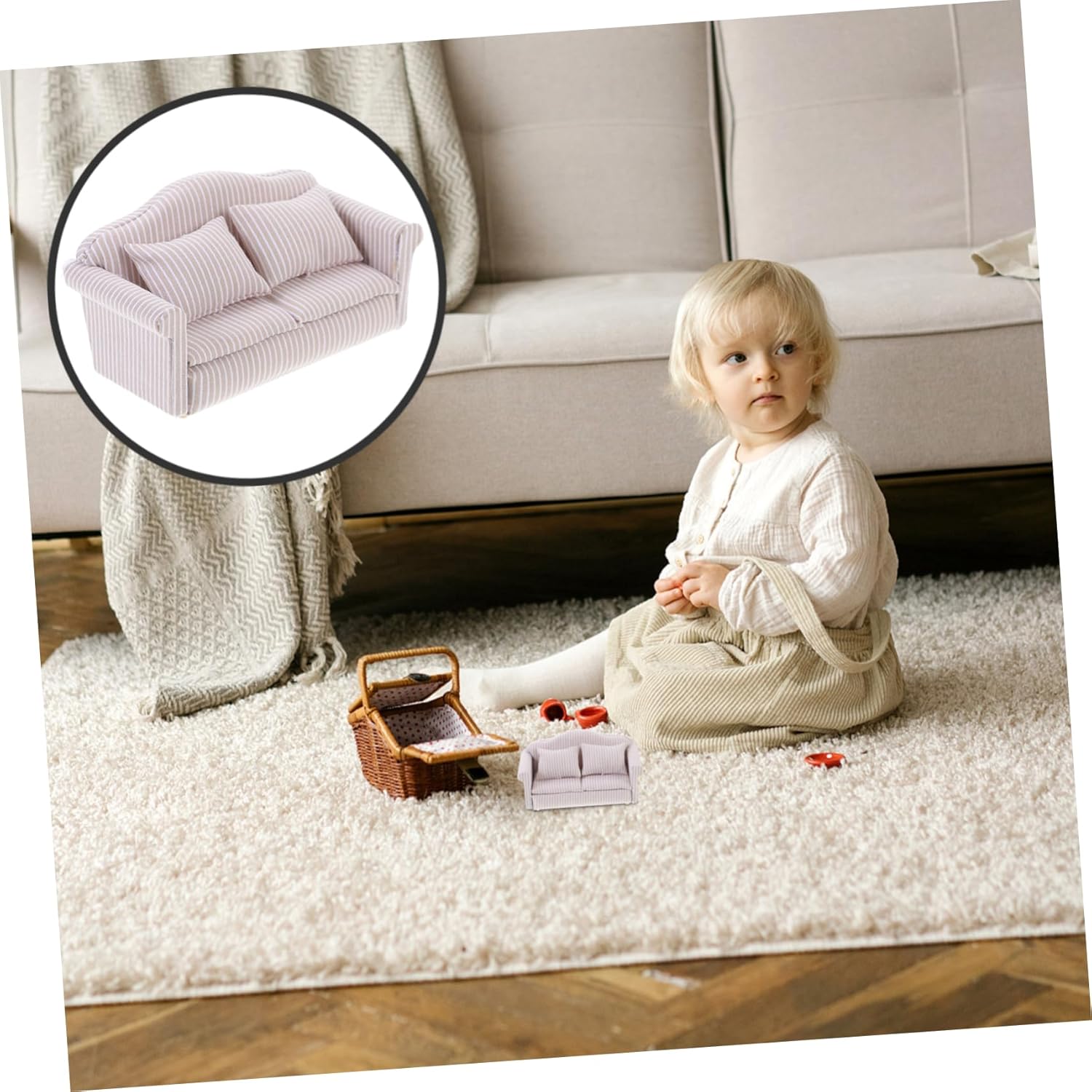 Mini ornamento: con il suo aspetto elegante, questo divano in miniatura migliorerà lo stile di qualsiasi casa delle bambole in cui è collocato. Ornamento del divano della casa delle bambole Divano con braccioli della casa delle bambole: superficie adorabile, semplice e vivace, questo mini set di divani è decorativo, un mini ornamento per la scena della casa, mini decorazioni per la casa Mini decorazione della casa: questo mini divano per le case delle bambole è realizzato in materiale di alta qualità e non è facile da rompere o sbiadire. Mini divano di supporto per piccoli mobili: combina questo divano in miniatura con altri mobili per case delle bambole per creare scene di vita vintage che riflettono il tuo stile unico, Mini divano per casa delle bambole Mobili per casa delle bambole: realizzato con materiali sicuri e pregevole fattura, questo modello di divano in miniatura può durare a lungo, mini gioielli per mobili