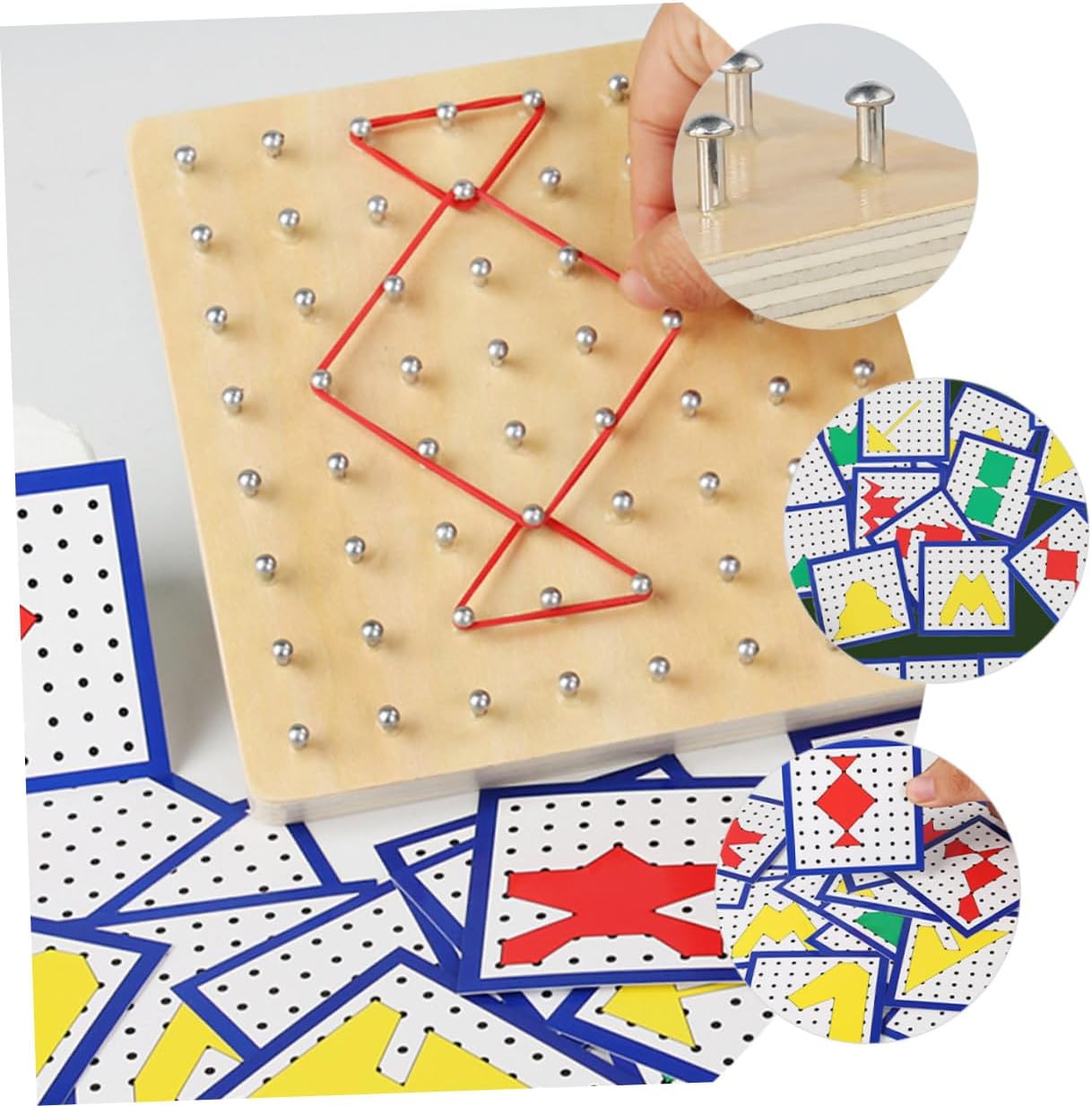 Geoboard per : una geoboard è uno strumento matematico manipolativo utilizzato per esplorare la geometria , puzzle geometrico Geoboard per : consentono al tuo apprendere la cognizione delle , forniscono i contenuti primari dell'apprendimento precoce dei , geoboard per Giocattoli geoboard: è un eccellente gioco interattivo genitore-figlio e un gioco da viaggio, una tavola abbinamento cognitivo-matematico Geoboard in legno: può migliorare la sicurezza e capacità motorie dei tuoi completandoli con carte o creando diverse, geoboard Giocattoli didattici per : i possono selezionare i punti spaziali corrispondenti chiodi della tavola in base alle immagini sulla , quindi utilizzare elastici per combinare diverse , tavole geometriche