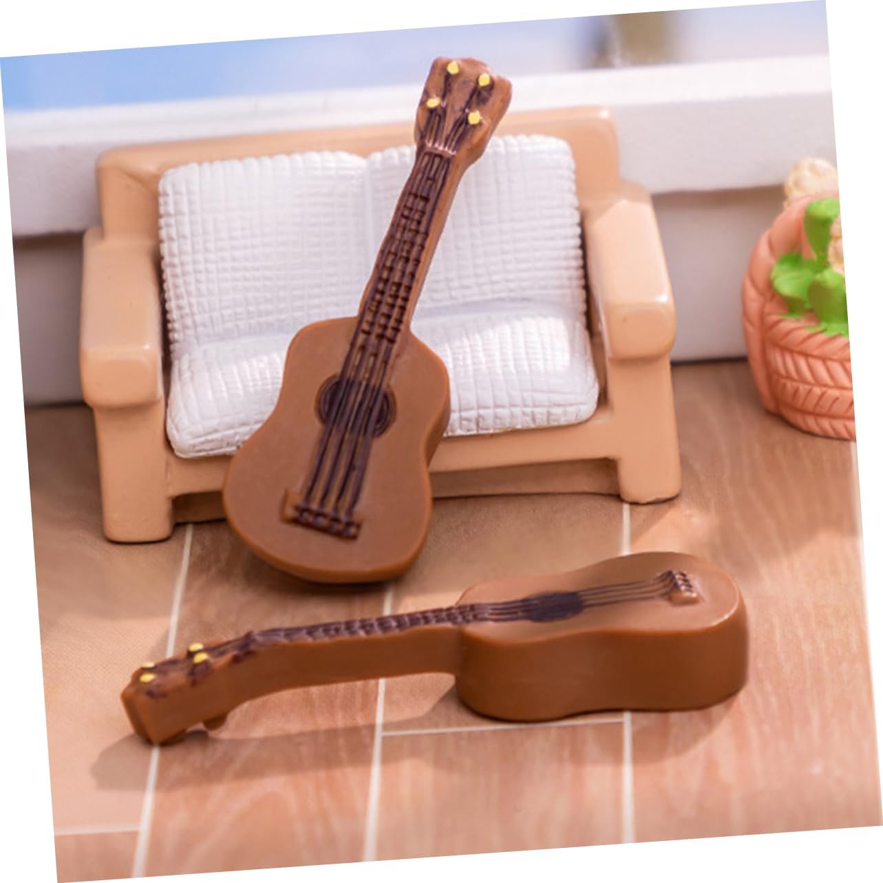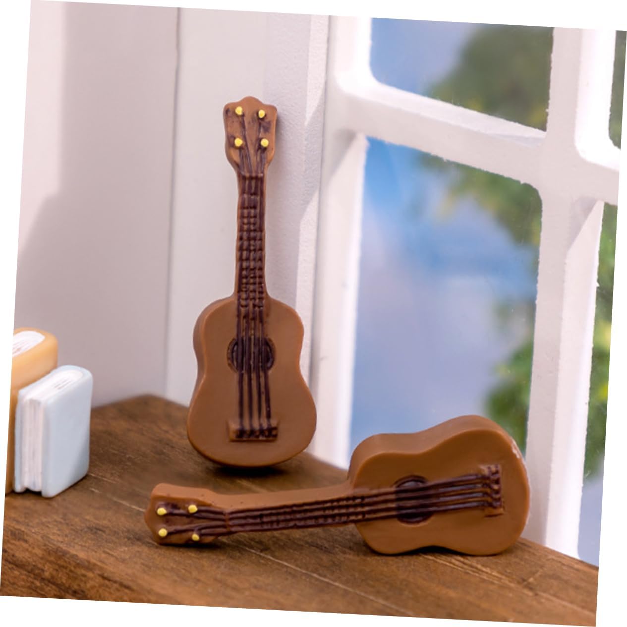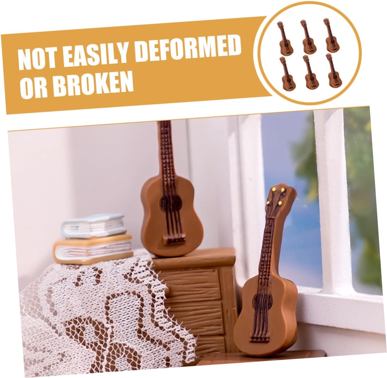 Mini statua di chitarra-- adatta per la decorazione domestica, scene paesaggistiche in miniatura, mini casa o qualsiasi altro posto che ti piace, accessori per la casa delle bambole Mini accessorio decorativo: questo modello di strumento può essere l'ornamento decorativo per il tuo modello di interni di mini casa, decorazioni per mini chitarra Mini decorazione della casa: puoi metterla in una mini casa per dettagli più realistici, dandoti un'impressione visiva diversa, mini chitarra Piccolo modello di chitarra: mini modello di strumento musicale classico, creativo e realistico, superficie liscia, strumento musicale per casa delle bambole Mini chitarra per casa delle bambole: il design tradizionale con ottima fattura rende il mini strumento musicale attraente e mini arredamento