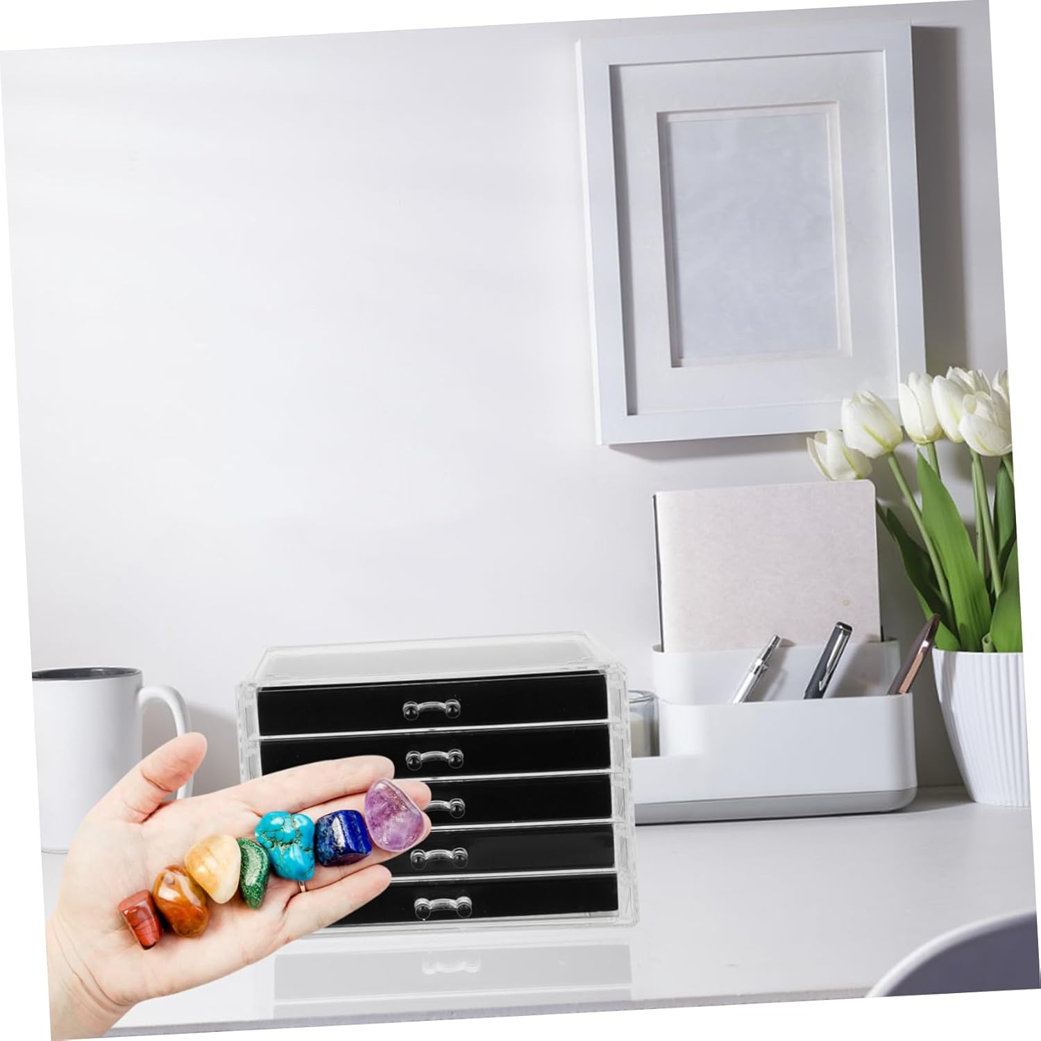 Cassetti separati: il cassetto consente un'organizzazione efficiente e un facile accesso alla tua collezione, vetrina per la collezione di rocce, organizer per la conservazione delle rocce Multiuso: questa scatola espositiva può essere utilizzata anche per altri oggetti, come gioielli, cristalli, conchiglie e altro, vetrina a scomparti, piccola vetrina morbido: l' del cassetto protegge i tuoi oggetti graffi, assicurando che rimangano in perfette condizioni, portaoggetti per collezione di pietre, organizer per orecchini a cassetto Realizzato meticolosamente con attenzione ai dettagli: il supporto vanta un aspetto elegante e alla moda, vetrine per oggetti da collezione in cristallo, organizzatori di gioielli e contenitori Dotato di più scomparti: questa vetrina ti consente di organizzare e mostrare la tua collezione in modo ordinato ed efficiente, porta orecchini, organizer per riporre gli orecchini