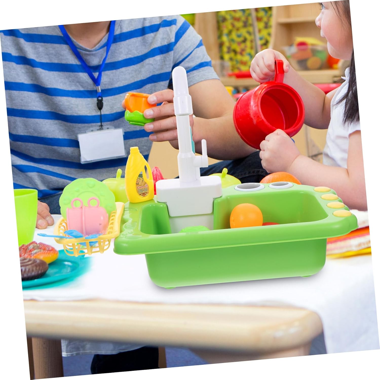 Giocattolo per elettrodomestico da cucina - un giocattolo educativo per i bambini per coltivare le loro abilità pratiche, capacità di riconoscimento dei lavori domestici, ecc., gioco di ruolo in cucina Giocattolo per lavello Gioca accessorio da cucina - consente la circolazione dell'acqua e lo spreco di acqua, inoltre, il rubinetto può essere girato, giocattolo modello di lavastoviglie Giocattolo per il lavandino per bambini - questo giocattolo per il lavandino è quello per tutto, saranno felici con questo giocattolo, lavastoviglie elettrica giocattolo per finta lavatrice - il design dai colori vivaci può offrire ai tuoi bambini immagini, decorazioni ed esperienza, Gioco di ruolo per bambini Giocattolo per lavandino per bambini Gioco di ruolo per lavandino - basta riempire il fondo del lavandino con acqua, girare la maniglia, quindi l'acqua scorre dal rubinetto, fingi di giocare al giocattolo del lavandino per il bambino