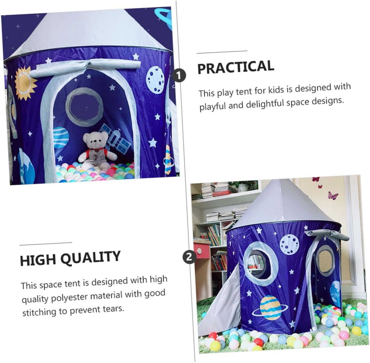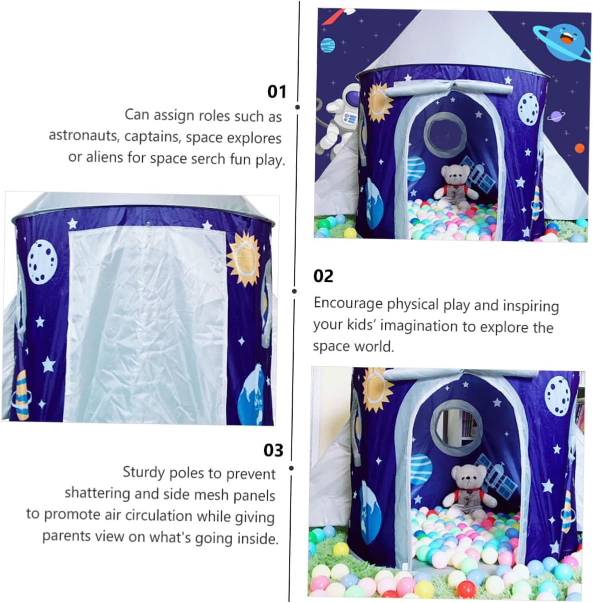 Casetta per : offre ampio spazio per riporre giocattoli e mobili per e ospitare 2 o più amici, a tema spaziale Da gioco: incoraggia il gioco fisico e ispira l'immaginazione dei tuoi verso il mondo, a tema spaziale Da : con tre finestre a rete sui lati, i genitori possono controllare più facilmente i per la loro sicurezza mentre giocano, a tema spaziale Da gioco per : può essere piegata quando non la usi, è facile da riporre e non ti servirà per molte occasioni, a tema spaziale A tema spaziale: realizzata in materiale poliestere di alta qualità per un uso durevole e pratico, casetta da gioco per