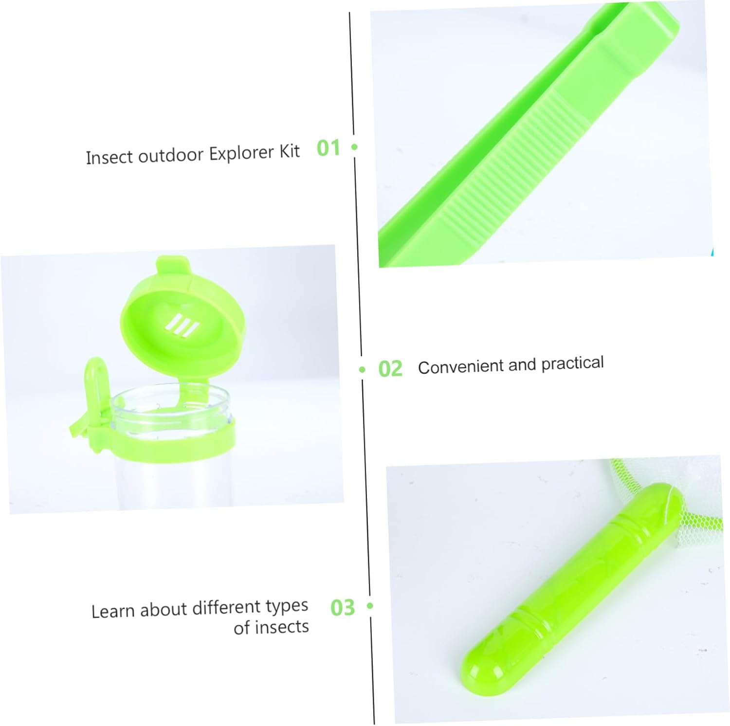 Kit esploratore esterno: scopri i diversi insetti, insetti, creature e altre creature del mondo esterno. , Strumento Circle Catcher: facile per aumentare l'interesse dei tuoi figli per gli studi, aiutarli a sviluppare capacità di pensiero diligente, abilità pratica e capacità di osservazione, Kit di raccolta per esterni Rete di cattura: dura, alta trasparenza e alta luminosità, facile da trasportare e riporre, Kit educativo per bambini Catcher per bambini: trascorri meno tempo davanti agli schermi del telefono e aiuta i tuoi bambini a scoprire la bellezza della natura, Kit pinzette per bambini: il tuo piccolo esploratore all'aperto avrà una piacevole esperienza di apprendimento utilizzando questo set di strumenti di esplorazione.,pinzette