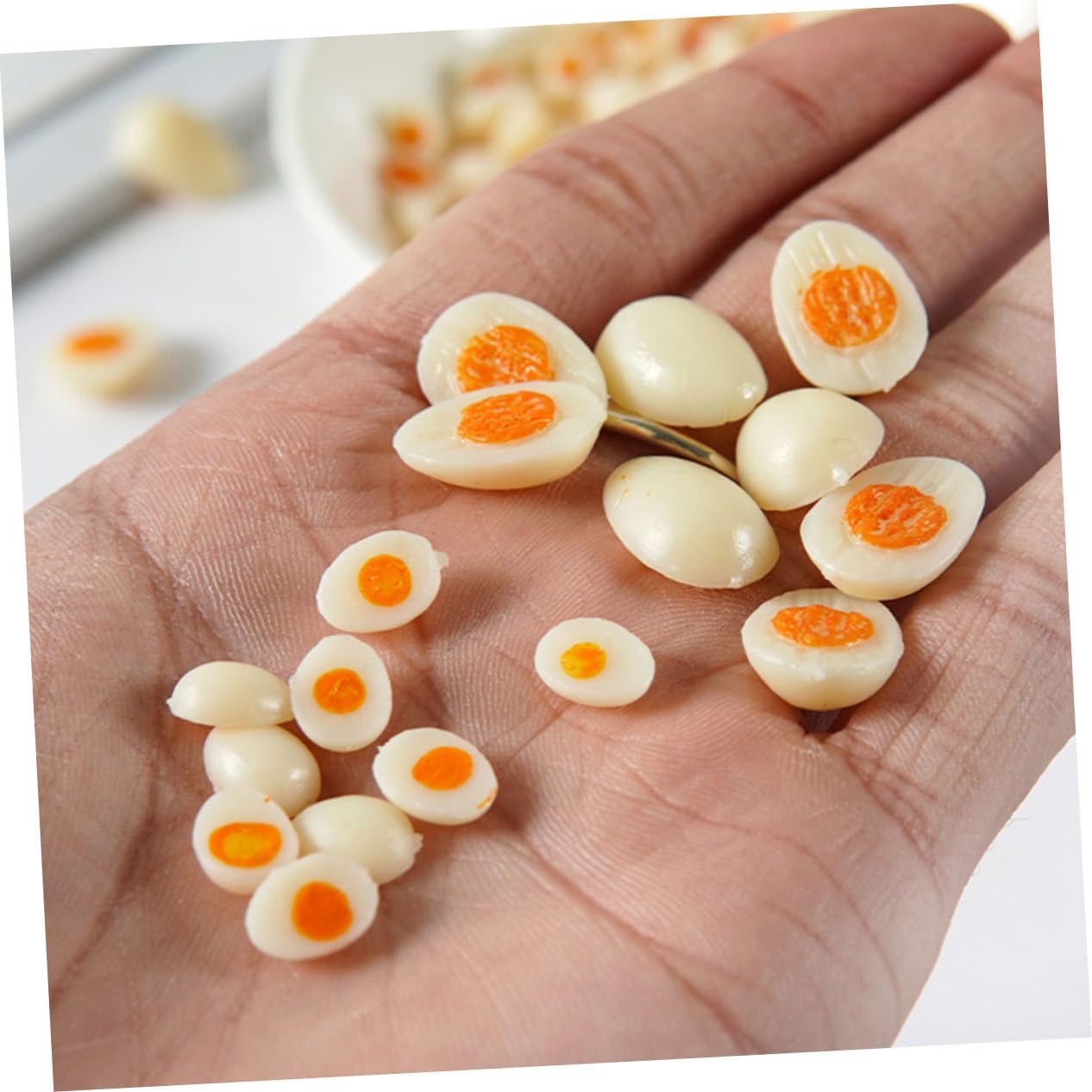 Uovo artificiale: di piccole dimensioni, portatile e leggero, facile da trasportare per giocare all'aperto, simulazione in miniatura, forniture fai da te per la decorazione del paesaggio, mini casa mini Modello di uovo sodo in miniatura: puoi mettere queste uova in miniatura per la decorazione di una mini casa, adatte per, soggiorno, giardino, ecc., artigianato in miniatura Giocattoli in miniatura a forma di uovo: la sua superficie liscia assicura che la sensazione al tatto della mano sia confortevole, più adatta per far giocare i bambini, mini casa Simulazione di giocattoli alimentari: e robusto per un uso, il mini arredamento ha una pregevole fattura che garantisce praticità e durata, decorazione della casa delle bambole in miniatura uova: perfetti accessori decorativi da cucina in miniatura per far giocare i bambini, portare divertimento infinito, accessori per la casa in miniatura
