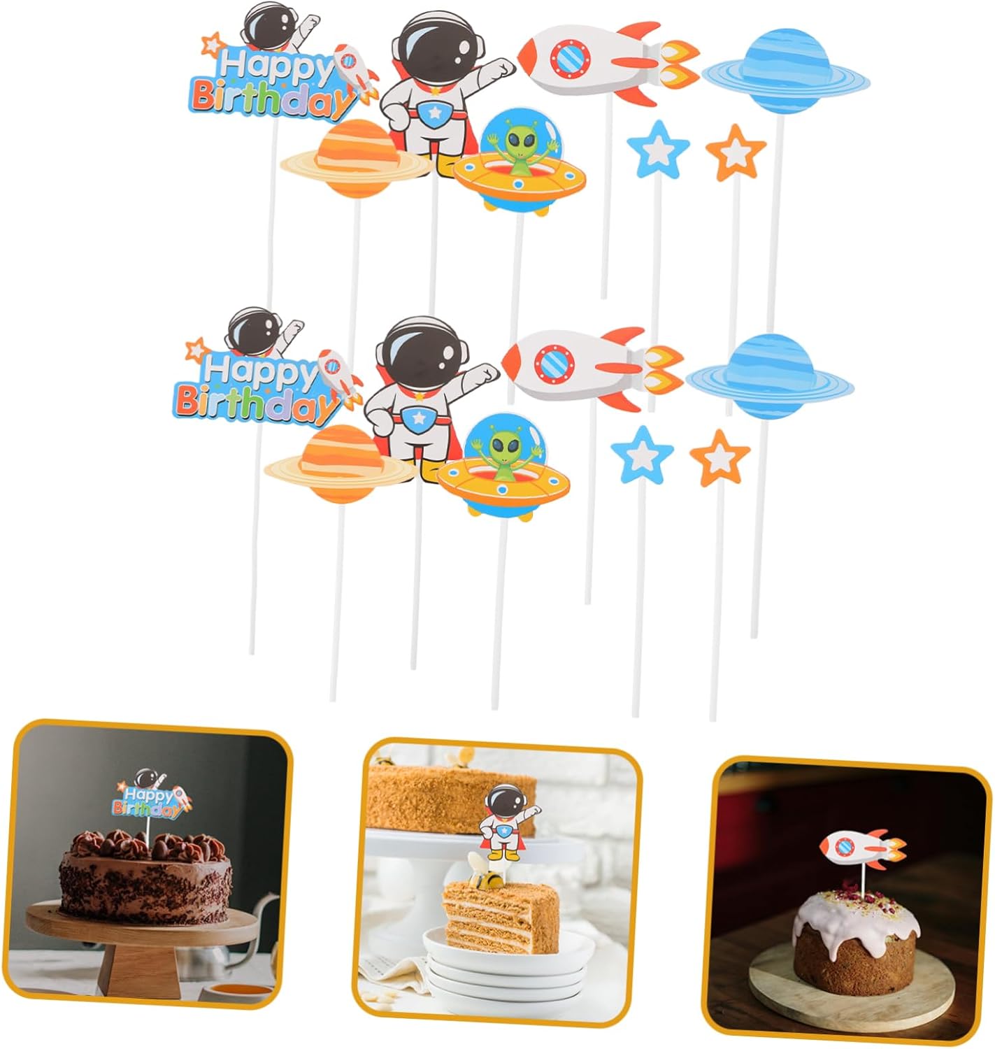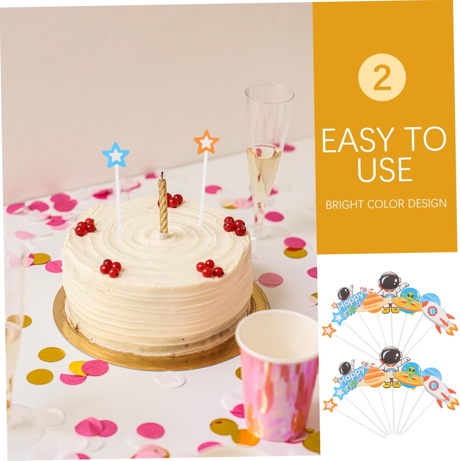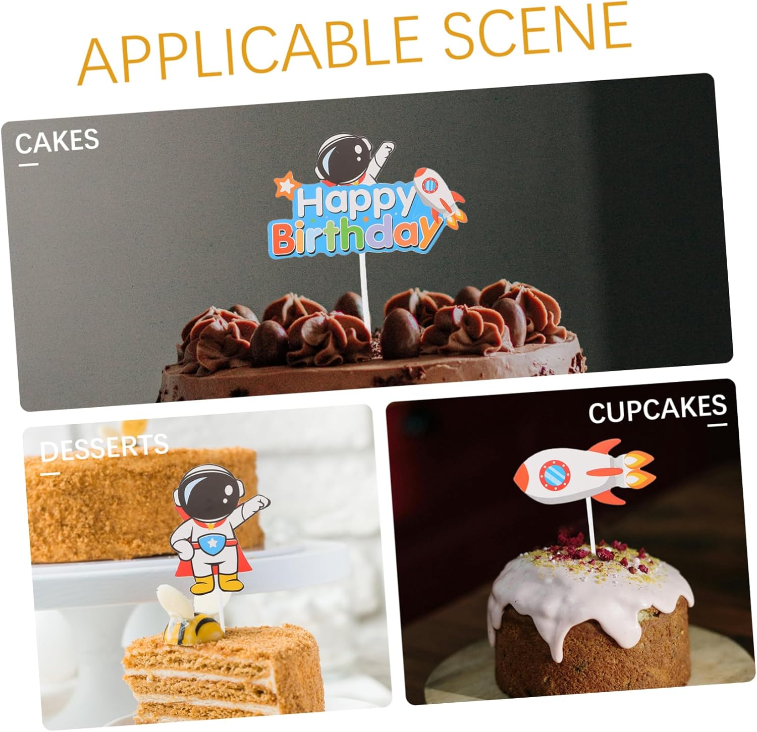 Design a tema spaziale: colori vivaci e tema spaziale rendono questo topper per cupcake un'aggiunta a qualsiasi festa o evento, decorazioni per torte, topper per torte con fate. Ampia applicazione: le decorazioni di compleanno possono essere utilizzate anche come antipasto, cibo per feste, torte, ecc. Accessori per decorare torte, decorazioni di compleanno Uso sicuro: questi toppers per torta sono sicuri per il contatto con torte, dessert, frutta, ecc., toppers per torte di compleanno, decorazioni Inserti per torte di compleanno - Realizzati in materiale sicuro e affidabile, sicuri da inserire nelle torte, questi toppers per torte sono pratici, feste spaziali decorazioni Decorazioni di compleanno per lo spazio esterno: la tua torta o cupcake sarà accattivante e festosa con questi toppers per torta unici, topper per cupcake spaziale