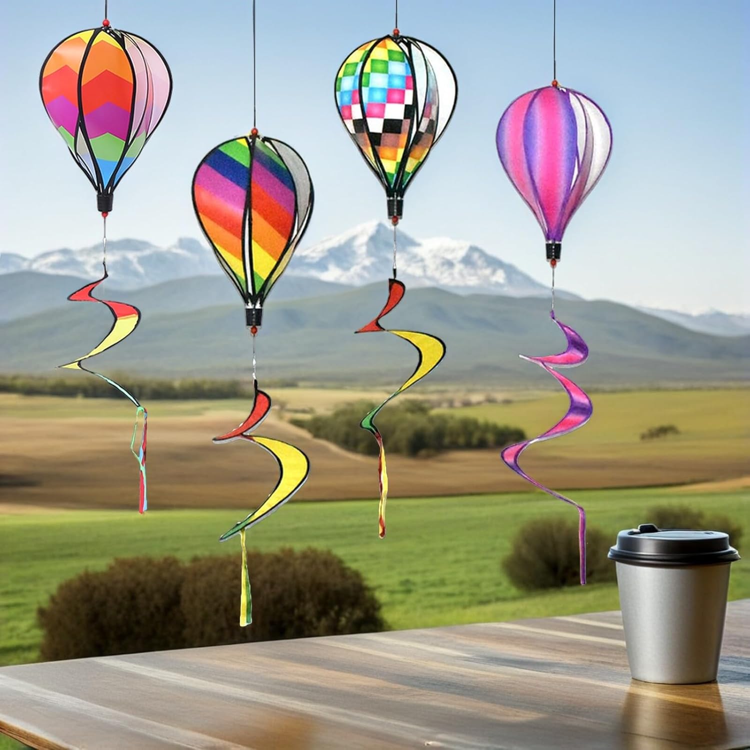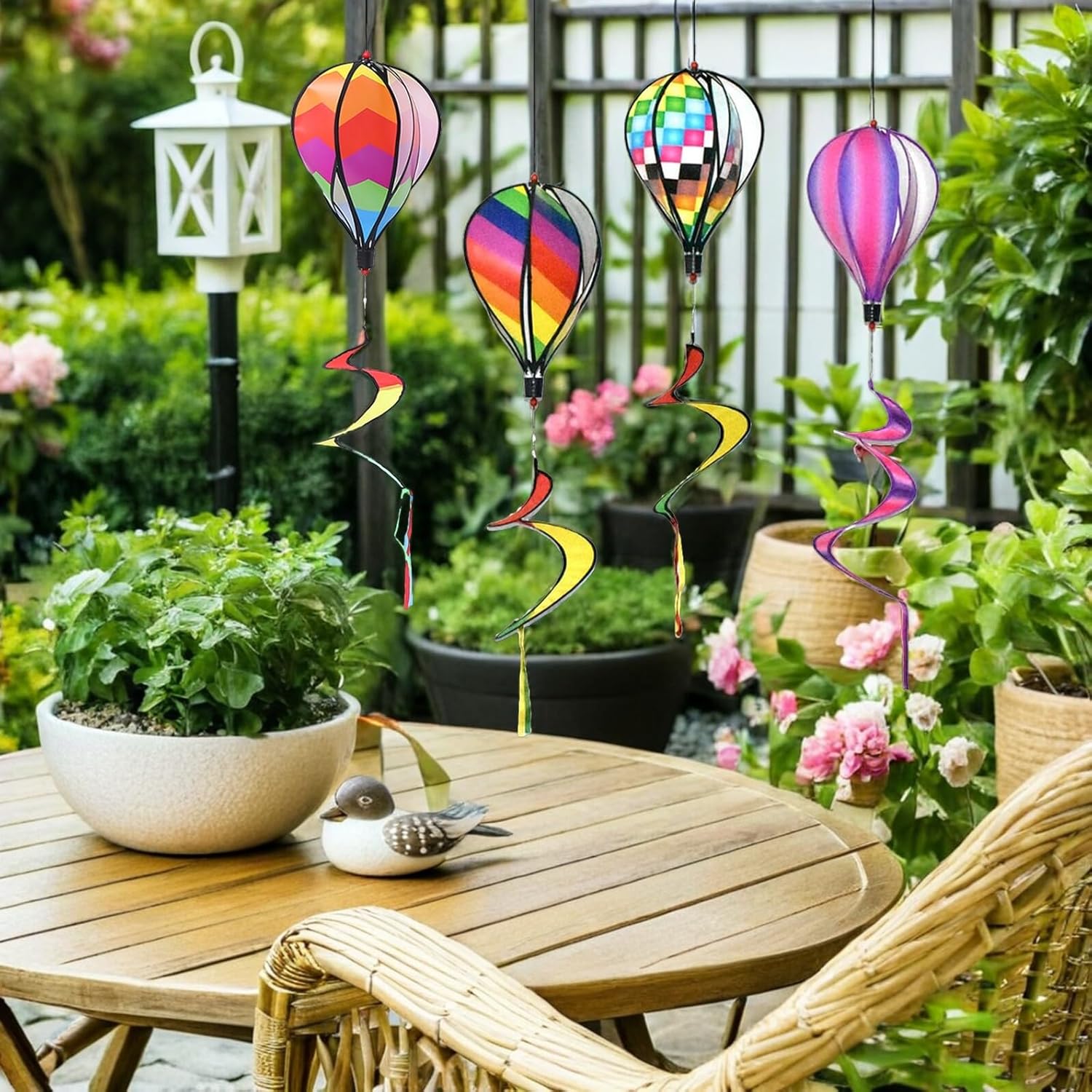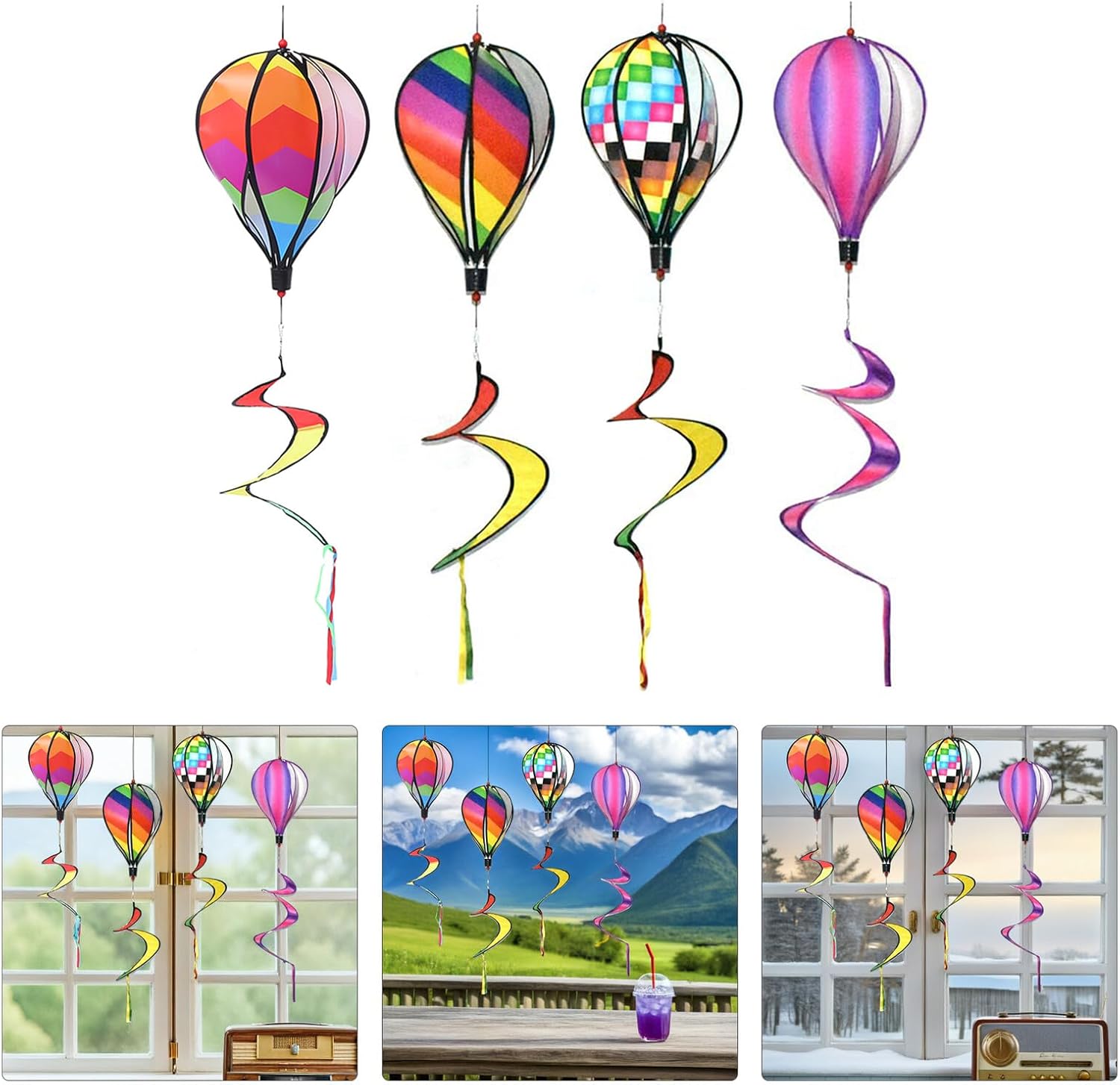 Decorazione per mulini a vento da esterno - Ampia applicazione adatta per giardino, cortile, patio, negozi, asili nido e altro, Mulini a vento per mongolfiere - Design creativo, colori brillanti, questa decorazione sospesa ruoterà costantemente nel vento, Mulino a vento sospeso Decorazione da giardino Mulino a vento in mongolfiera - Artigianato, attentamente considerato in ogni dettaglio per farli sembrare belli, Mulino a vento Ornamento per prato Decorazione del mulino a vento da giardino - Pendenti Palloncini a spirale accattivanti, porta di più nel tuo giardino, mongolfiera a vortice di aria calda - può essere appesi all'albero, al soffitto o alle finestre, possono aggiungere più bellezza al tuo spazio, mongolfiere artigianali da giardino