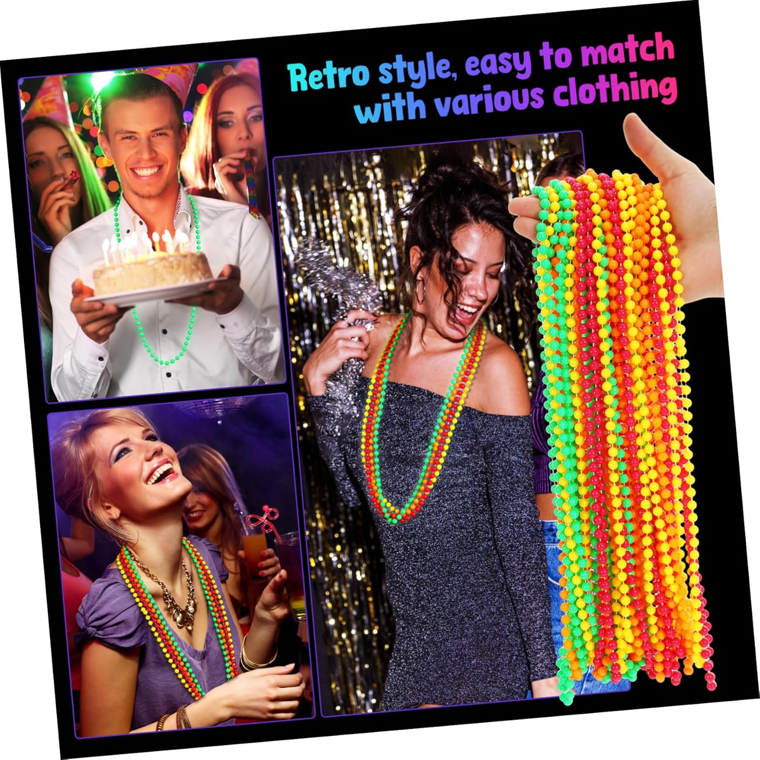 Divertimento per eventi a tema: perfetto per eventi scolastici, feste compleanno, halloween o qualsiasi occasione in cui si desideri un colore alla , bomboniere con perline , decorazioni per feste natale Indispensabile per feste: queste collane con perline al neon sono per feste , eventi rave e feste in maschera, assicurandoti distinguerti tra la folla, gioielli fluorescenti, accessori al neon Usi versatili: ideali per feste a tema, come feste al neon, feste , halloween, capodanno, ecc., queste collane possono migliorare i costumi e l'abbigliamento da senza , accessori per collane , perline colorate Leggero e pratico: materiale plastico queste collane al neon siano leggere e facili da trasportare, una scelta pratica per gli amanti delle feste, accessori per feste natale, gioielli al neon per donne Costruzione robusta: realizzate in plastica, queste collane sono fatte per durare, consentendoti riutilizzarle per feste senza preoccuparti dell'usura, perline per feste, collane neon per donne