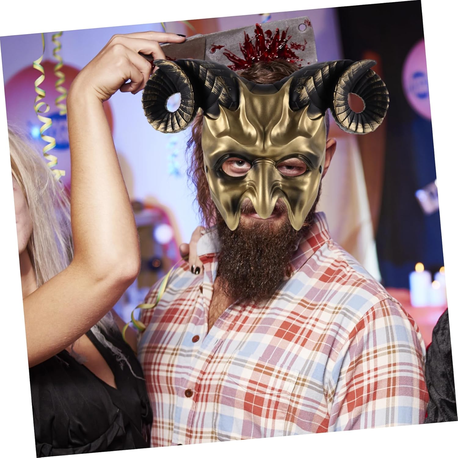Elenco dei pacchetti 1 x Caratteristiche - Taglia: 35,00 - Materiale: plastica per feste - Colore: oro Decorazioni con palline per la festa - Comodo da indossare: è realizzato in PU, leggero e sicuro, comodo da indossare per Halloween. - Con un design e una trama accattivanti a forma di orso, può essere più realistico e rendere la tua plastica più bella. - Questo aspetto divertente ti permette di distinguerti dalla massa, per usare un corno di bue. - Ha un elastico che si adatta bene alla tua taglia, adatto alla maggior parte delle persone, adatto per maschere da donna e da uomo. Descrizione degli articoli di Halloween Design semplice, ti farà sembrare accattivante e. Questa è una mascherata, realizzata in materiale plastico, con lavorazione artigianale dettagliata, per garantire sicurezza e usura. Ampiamente applicato per feste di Halloween, carnevale, compleanni, balli studenteschi, ecc.