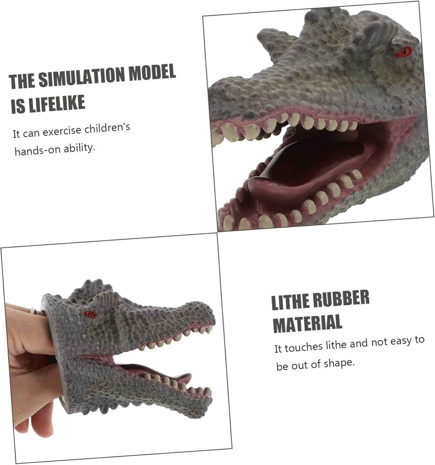 Burattino a mano giocoso: realizzato in materiale di alta qualità, sicuro e adatto a mani e dita Burattino a mano: questo realistico burattino a mano è progettato come una testa di dinosauro con mascelle e denti articolati, burattino a mano per giochi di ruolo Burattino a mano per bambini: il suo dipinto dettagliato e le sue posture conferiscono alla figura un aspetto animato, da gioco di ruolo Burattini giocattolo: adatto per il bambino da afferrare e giocare, mordendo le dita degli animali Burattino a mano testa di animale: perfetto per i bambini come compleanno, per mani e dita