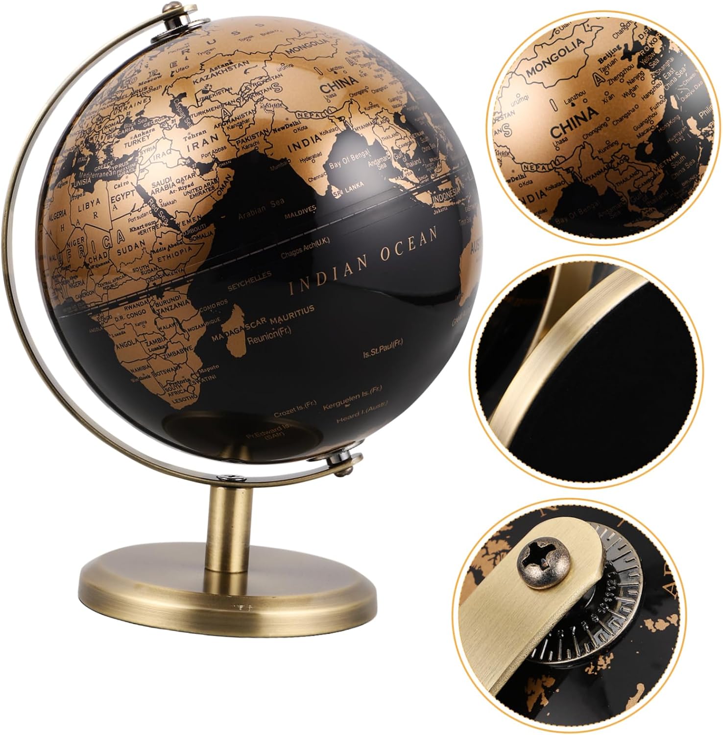 Facile da pulire: Con la sua superficie liscia e facile da pulire, questo mappamondo rimane un bellissimo complemento d'arredo che richiede poca manutenzione, Ornamenti da scrivania, Mappamondo da tavolo Ornamento distintivo: Il design intricato e la lavorazione artigianale di questo mappamondo lo rendono un pezzo straordinario che mette in mostra il tuo gusto e stile sofisticato, Mappamondo da tavolo, Mappamondo decorativo Decorativo adattabile: Questo mappamondo è progettato per essere complementare sia per la casa che per l'ufficio, rendendolo un'aggiunta versatile ed elegante a qualsiasi arredamento, mappamondo rotondo, mappamondo vintage Pezzo decorativo unico: il design intricato e la lavorazione artigianale di questo mappamondo lo rendono un pezzo straordinario che mette in mostra il tuo gusto e stile raffinato, mappamondo da scrivania decorativo, mini mappamondo da scrivania