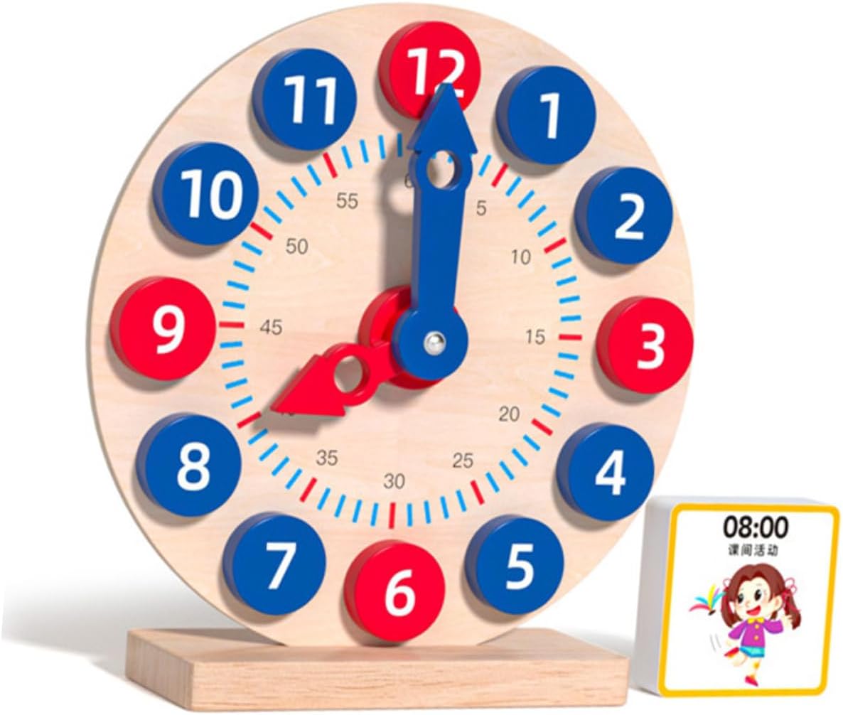 Orologio per bambini - design con numeri e colori vivaci, può aiutare i bambini a conoscere colori, tempo e numeri, orologio simulato Giocattolo con numeri cognitivi per - i quadranti aiutano i bambini a leggere l'ora e a comprendere il significato del tempo in giovane età Giocattolo per imparare il tempo - questo giocattolo in legno è spesso usato nelle lezioni della scuola materna e può dare ai bambini il divertimento di comprendere il tempo e insegnare loro a conoscere gli orologi Kit orologio per bambini - design dai colori vivaci e aspetto visivamente accattivante, bello e molto attraente per gli orologi per bambini Orologio per bambini - il giocattolo educativo è adatto per insegnare ai bambini l'immaginazione e i concetti matematici e rendere più facile per loro l'apprendimento dell'orologio