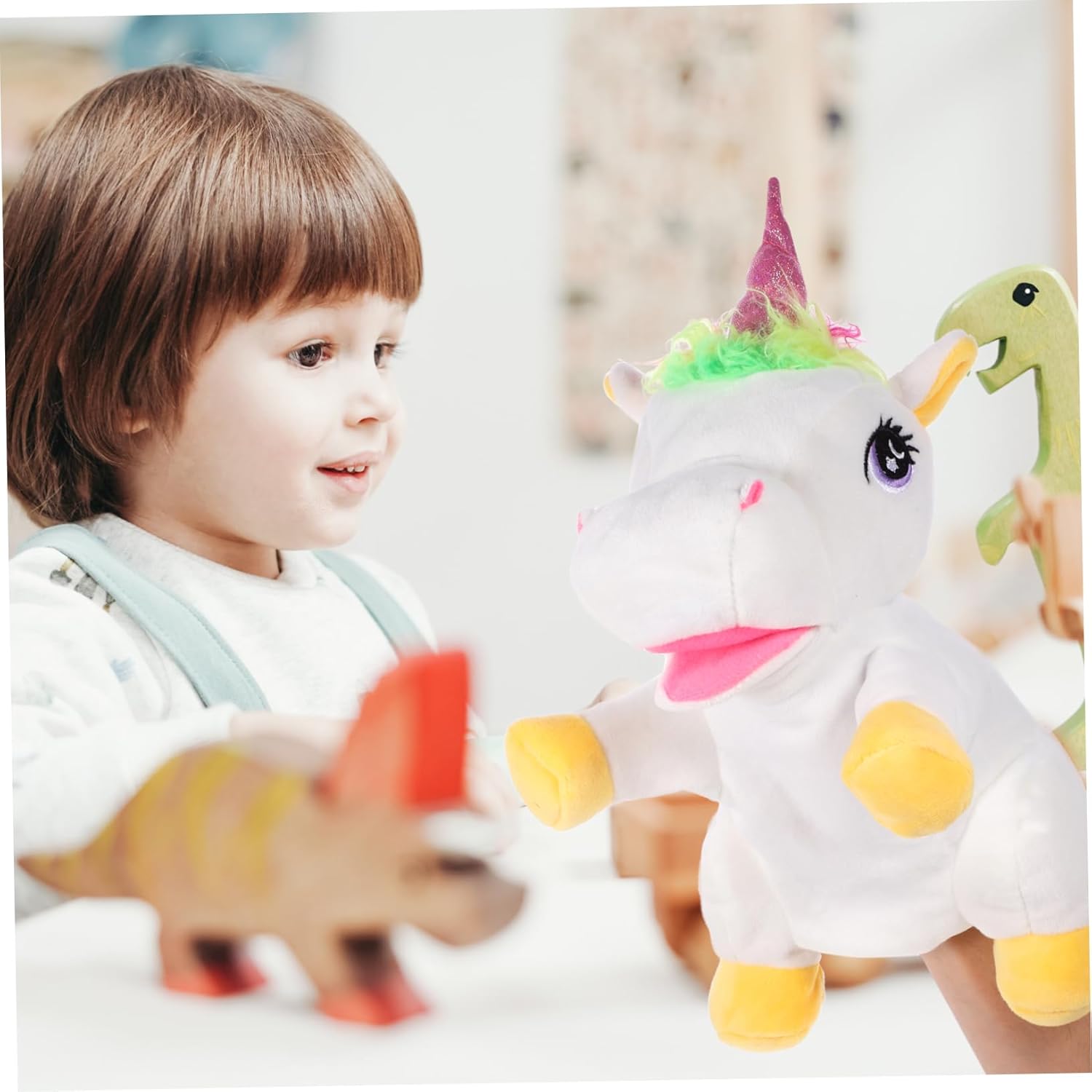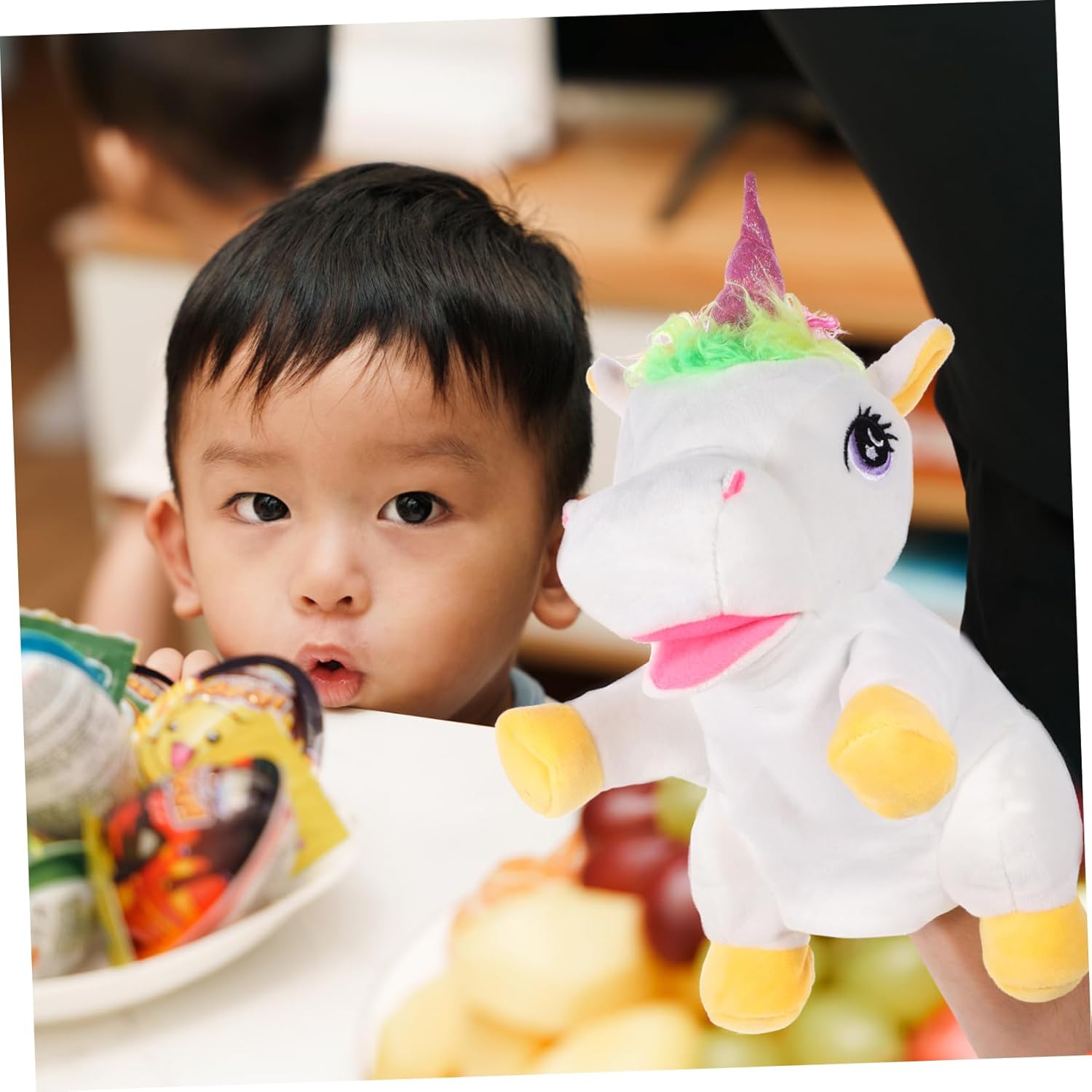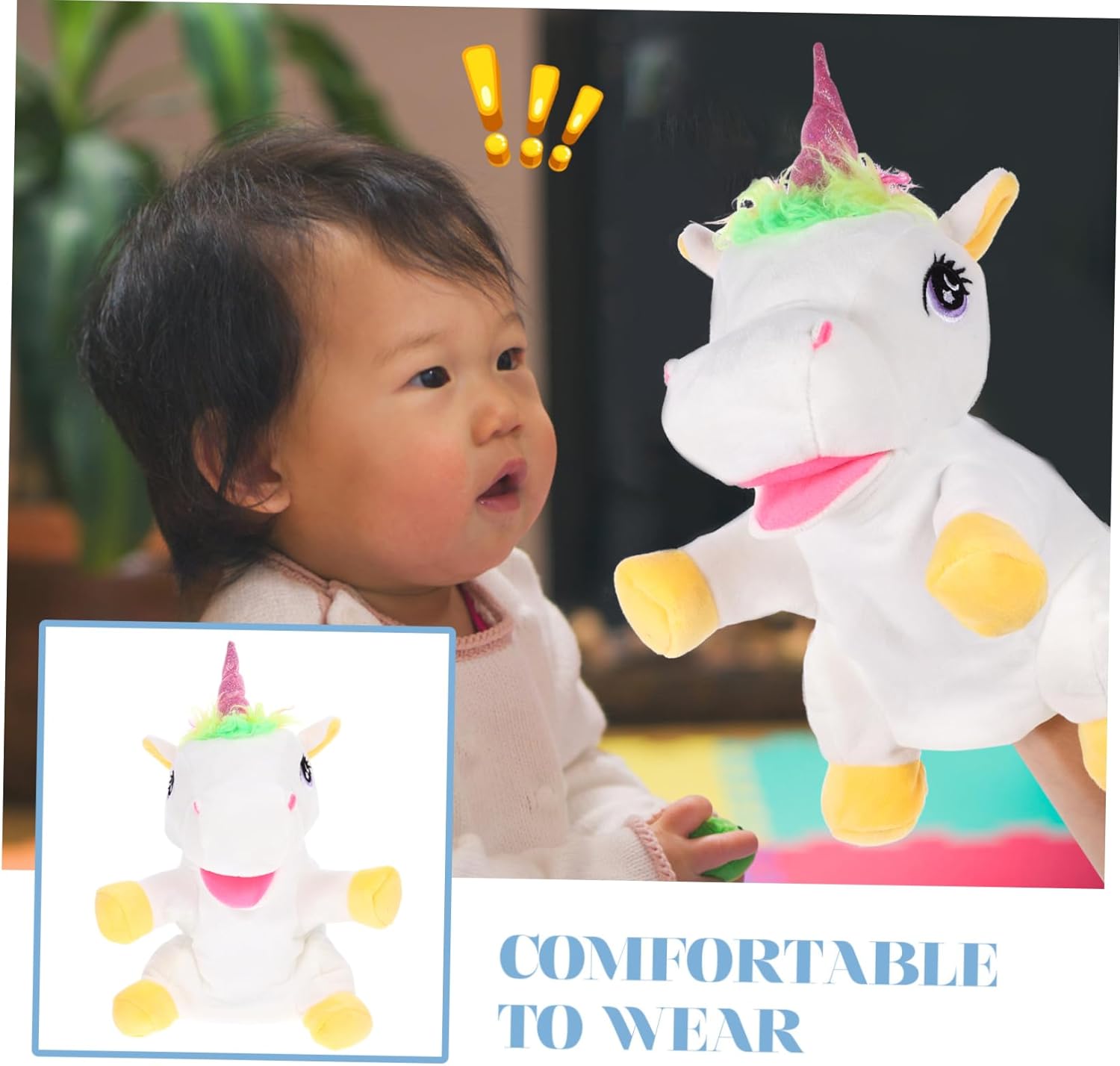 Burattino a mano con unicorno per raccontare storie - fornisce un tocco gentile e confortante con il suo morbido materiale peluche, creando un senso di sicurezza e comfort, tenuto in mano per raccontare storie Burattino a mano interattivo - burattino a mano con unicorno, regala ai bambini un divertimento infantile, il burattino a mano è morbido e pieno, burattini a mano per i più piccoli Burattino a unicorno fai da te - strumento di narrazione interattivo per migliorare l'immaginazione e le abilità linguistiche dei bambini con questo burattino a mano, Puppet Hand Puppet Kit unicorno per bambini - fornisce una sensazione accogliente e confortevole con il suo morbido materiale di peluche, aggiungendo all'attrattiva generale del burattino a mano, burattino a mano Burattino a mano realistico: il burattino decorativo a mano con unicorno è ottimo per la relazione genitore-figlio, aiuta i genitori a legare con i bambini, burattini per bambini